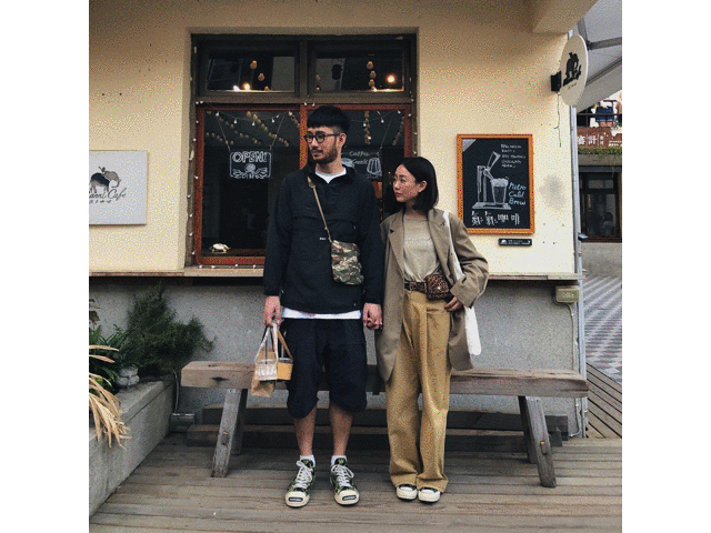 除了整体服装的协调搭配,他们的帽子、耳饰也全部成双成对,就连口罩也要用情侣同款。如此抓马的情侣穿搭被他们拿捏的恰到好处,极具个人特色。