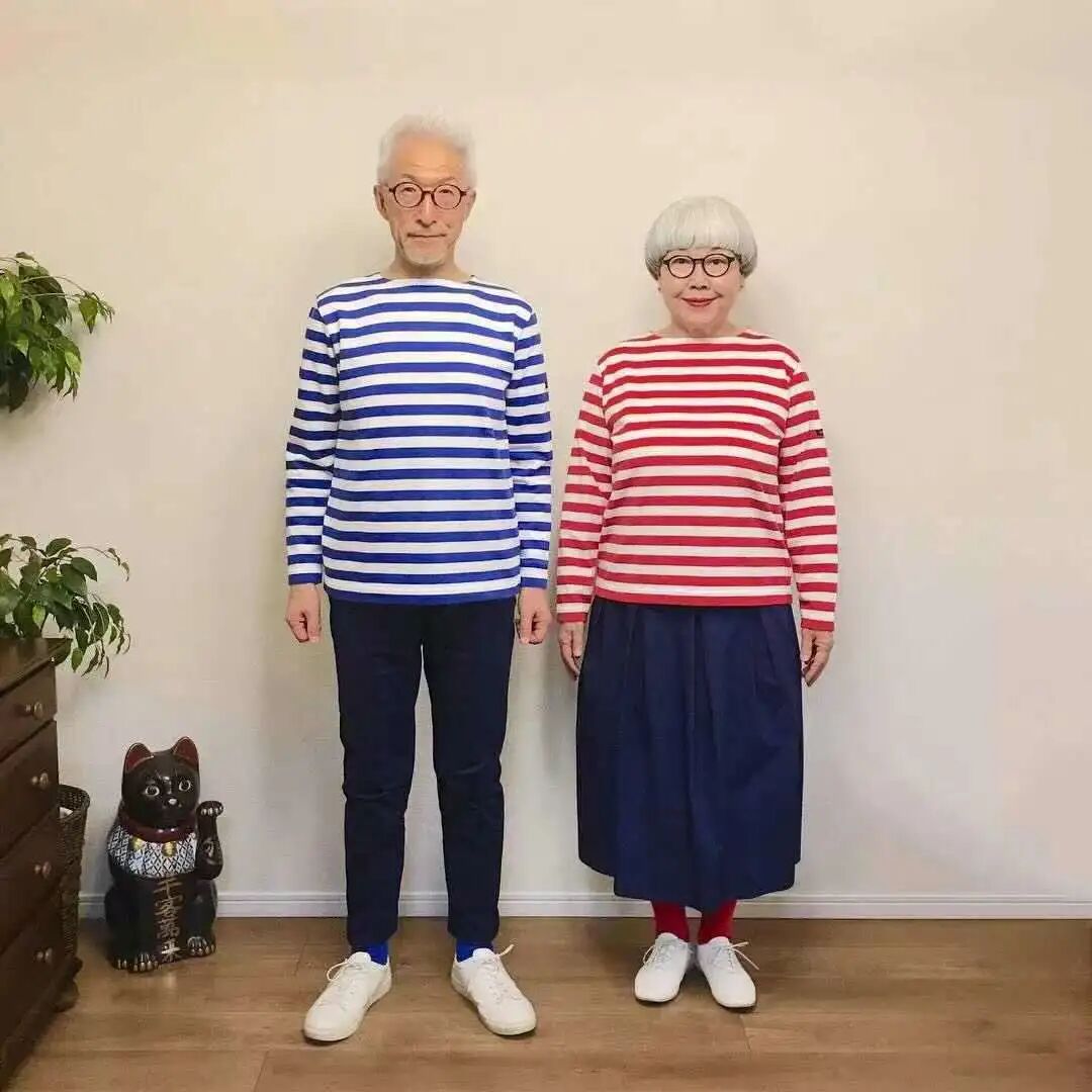 这对来自日本的夫妻已经携手度过了41个年头,他们每天都在身体力行地告诉全世界,爱对了人每天都是情人节。很多人在穿情侣装时,只知道同色系搭配,而这对夫妻偏偏反其道而行,利用各种鲜艳的对比撞色,显示出他俩的古灵精怪。