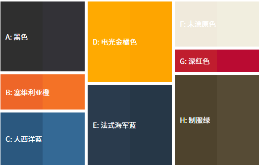A: 153-19-00, B: 022-54-35, C: 115-35-20, D: 031-72-40, E: 19-4122 TCX, F: 036-89-06, G: 010-38-36, H: 041-28-11