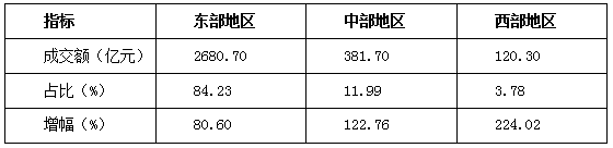 从流通层级来看,46家重点监测市场单位中包括27家产地型专业市场、19家销地型专业市场。2021年1-3月,27家产地型市场成交额达到2838.86亿元,占总成交额的89.20%,同比增长86.26%,较2019年同期增长16.89%;18家销地型市场成交额为343.85亿元,占总成交额的10.80%,同比增长103.81%,较2019年同期下降12.32%。