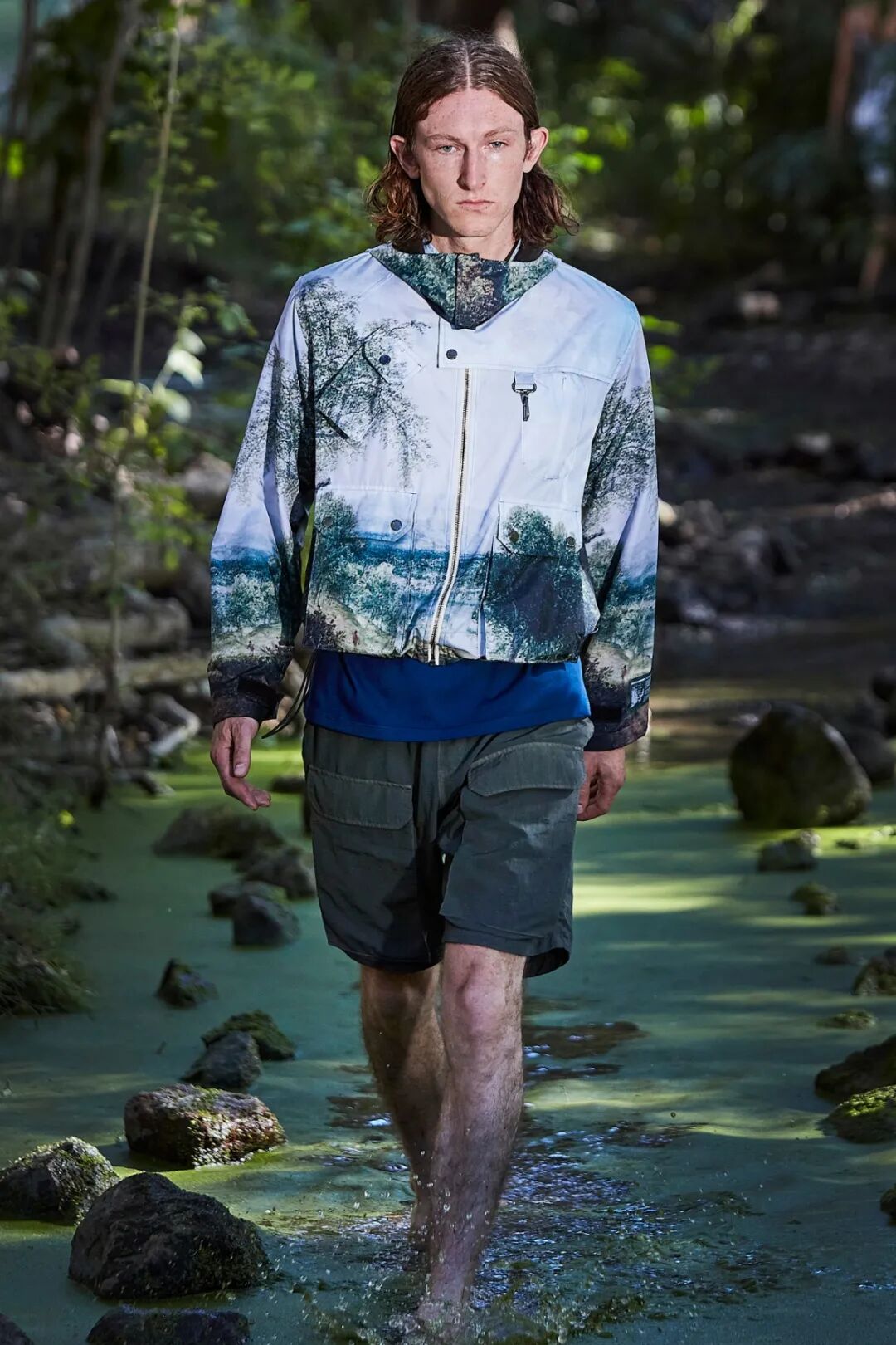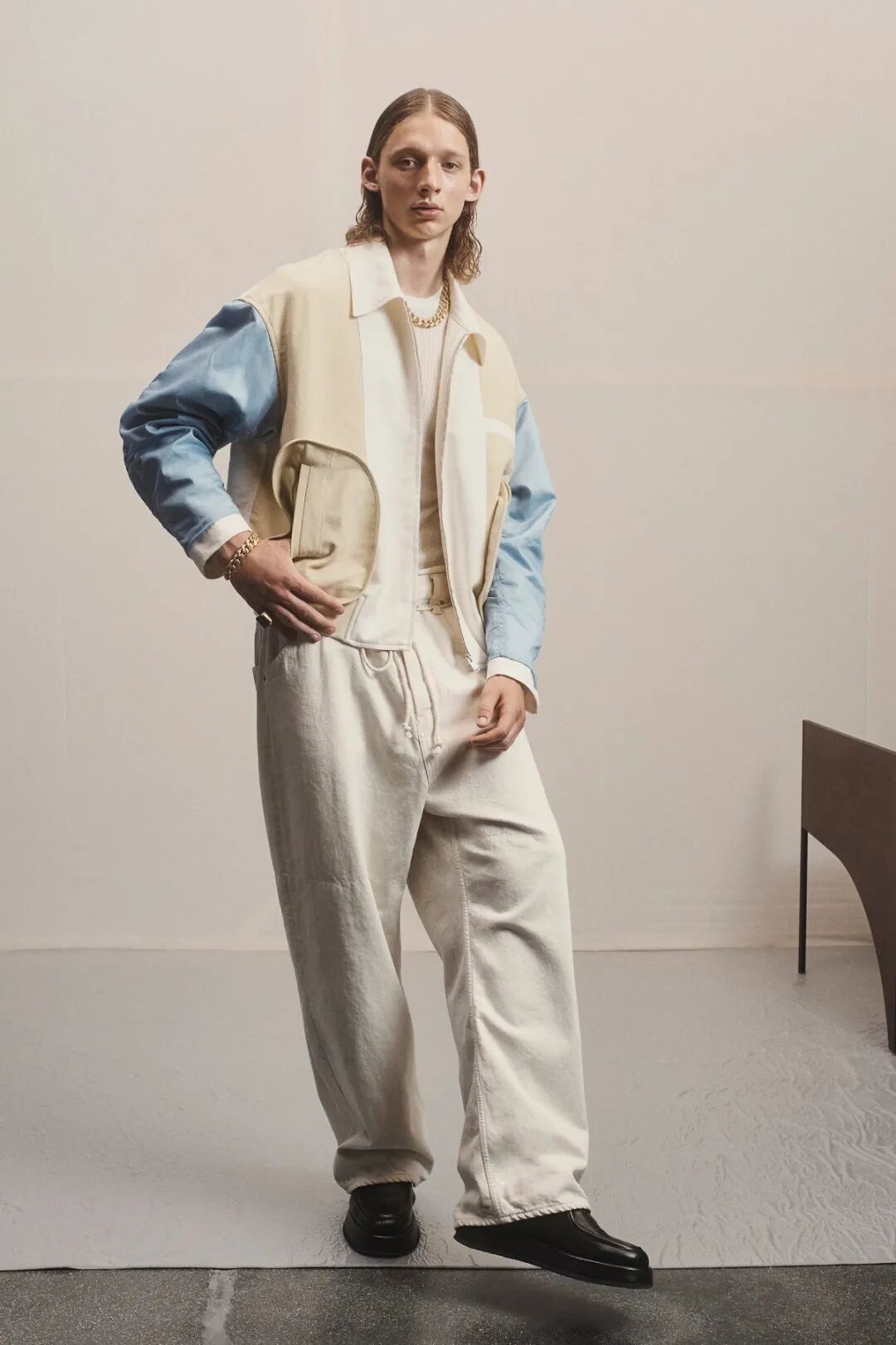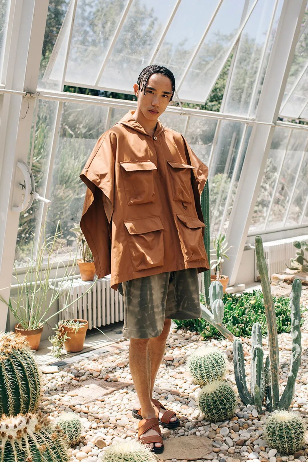 高克重棉质面料搭配机能风街装轮廓,结合后整工艺强化防护性能;有机棉、有机亚麻等是关键材质,有助于实现挺括感、舒适性、生态性和自然风格的合一;纤薄的纳帕皮轻盈而质地坚韧,可凭借原生自然风貌打造高级实用款型;防护型面料被附加更多诸如防风防水、抗菌抑菌、防蚊虫、抗UV等功能性。