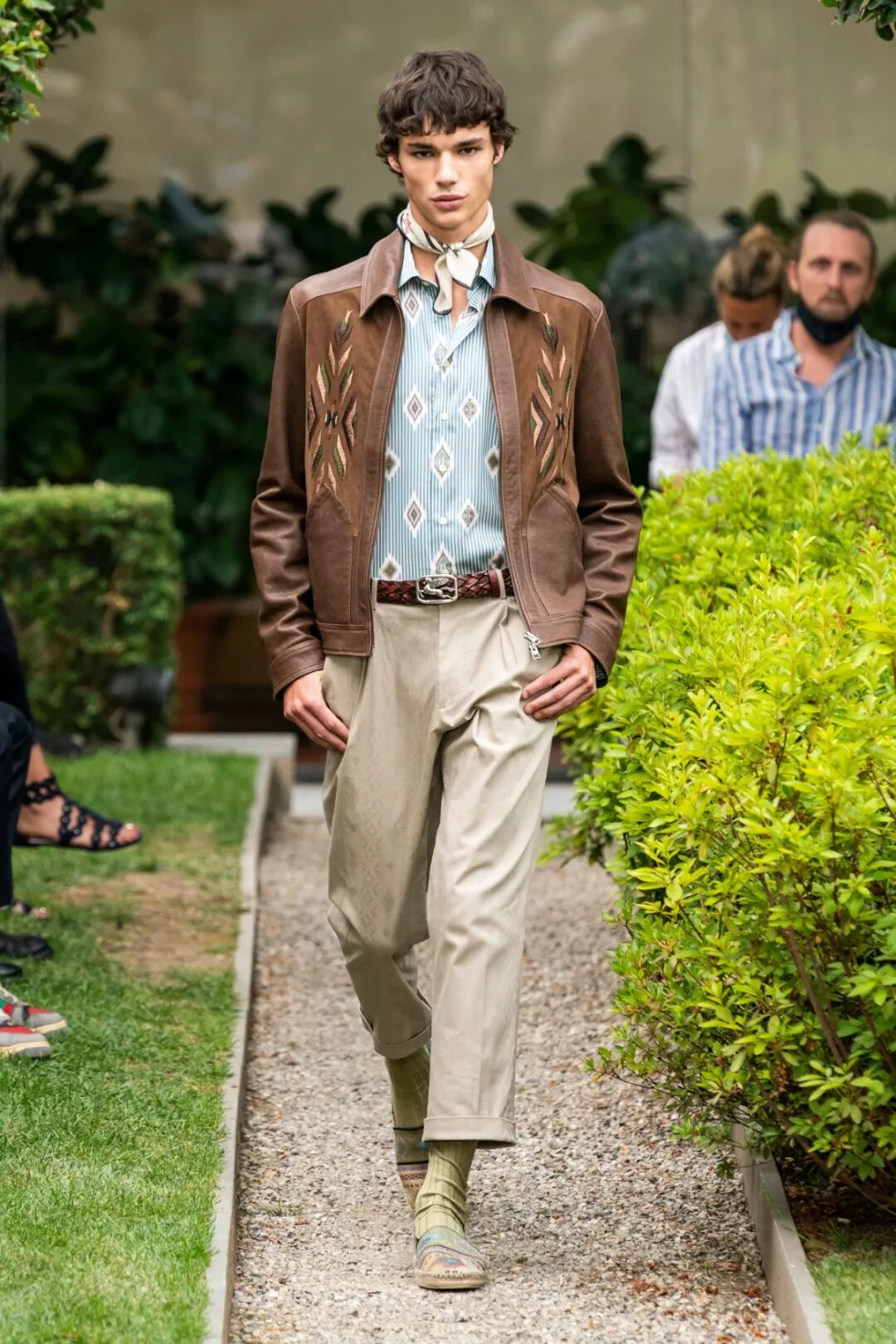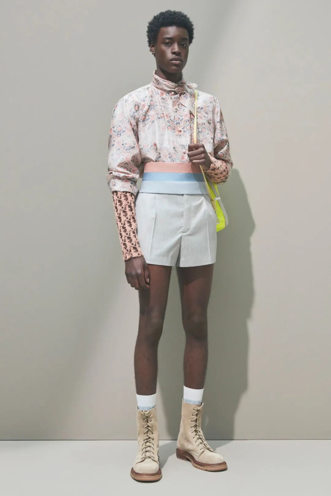 顺应柔和男性气质风潮,粉彩色在男装市场的风靡之势仍在持续。各色短裤搭配毛衣或衬衫、夹克,营造出了青涩慵懒的视觉效果,带来强烈的“少年感”;中性化单品如Dior三色束腰带等配件为单调的配色增添趣味;宽松的服装廓形,轻松打造都市休闲风格。