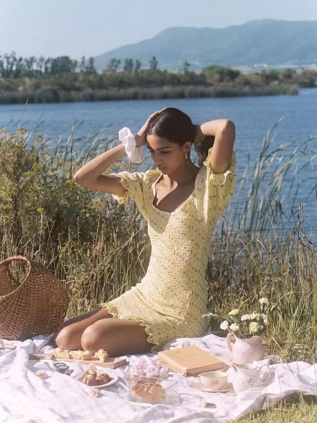 或者你想要清新自然又自带仙气的风格,太过厚重的纱裙或者紧身的裙装都不太适合公园露营,不妨选择这种轻盈可爱的泡泡袖短裙,可爱灵动的装扮也是嗲的很。