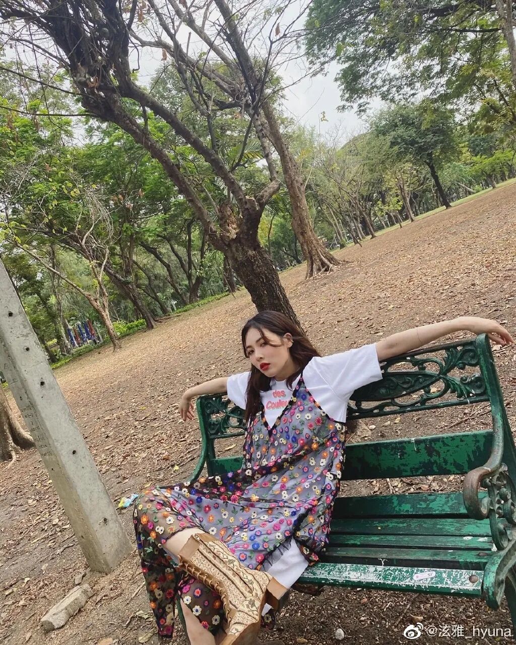 越“作”越“美”,绝对是公园露营出片的秘诀所在。在穿搭选择上,有表现力的姐妹们不妨尝试一下泫雅的前卫混搭风。从头饰、妆容、到服装、鞋子,用不同的风格、不和谐的元素搭配出独特的时尚感。拍照造型也可以偷偷学起来~