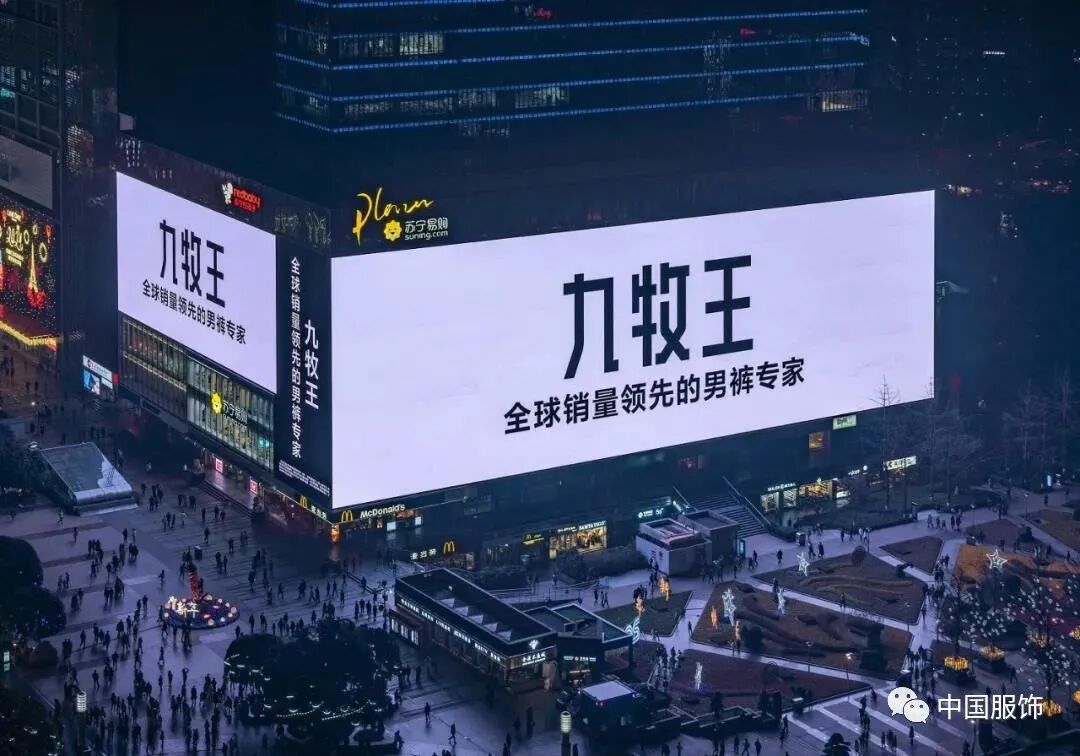 此外,为扩大曝光度和影响力,持续筑高品牌势能,九牧王携手分众传媒,通过广告大片、户外广告等进行立体化品牌发声,提升男裤专家的品牌形象。
