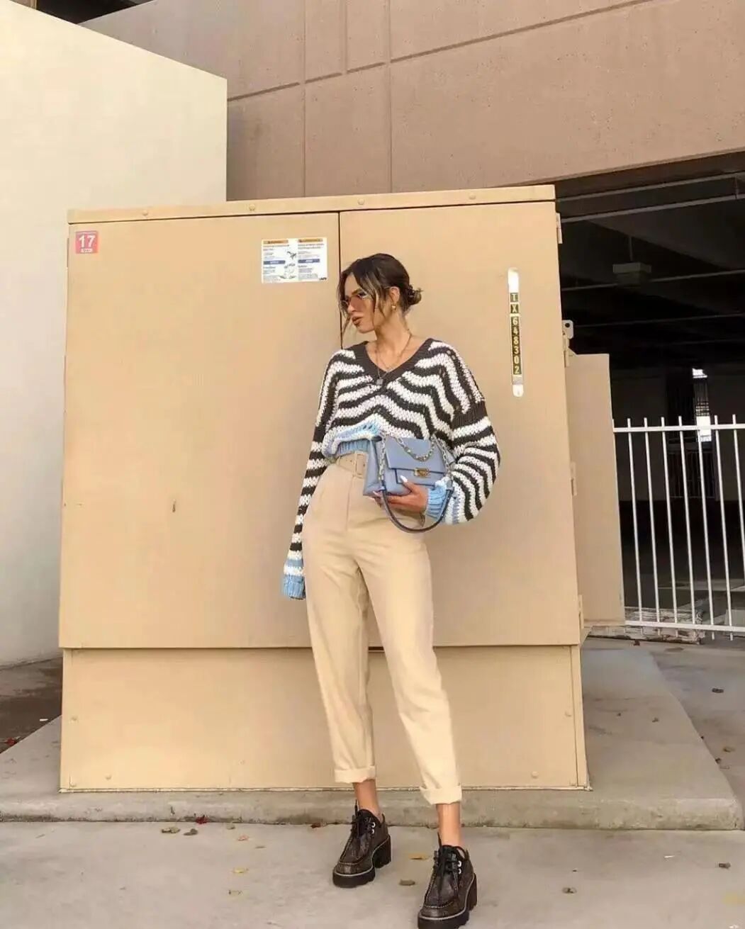 显瘦穿搭的另一个核心招式就是提高腰线,不论是裙装还是裤装,高腰绝对是首选。高腰不仅能很好的修饰腰部曲线,还能完美的拉长下身长度,既显瘦又显高,一举两得岂不乐哉。