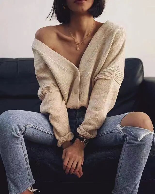 很多人只知道哪里胖遮哪里,但一味的遮盖只会适得其反,显得身材更加臃肿。高级的显瘦穿搭在于懂得如何扬长避短。选择V领的服装,不仅能够修饰脸型,还能露出锁骨,为整体造型增加纤细感。除了锁骨,露出脚踝、手腕也能够起到显瘦的作用。
