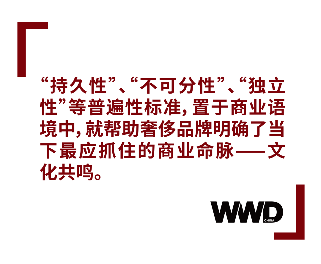 比如 40 年前给中国带来第一场国际品牌时装秀的 Pierre Cardin,从 1978 年随考察团第一次来到中国、到决定将时尚事业带到刚刚改革开放的中国并在这里办秀;2007 年担任 Fendi 设计师的 Karl Lagerfeld,把时装秀带到中国长城......这一一证明文化要素在价值序列中,“持久性”普遍标准的客观存在。