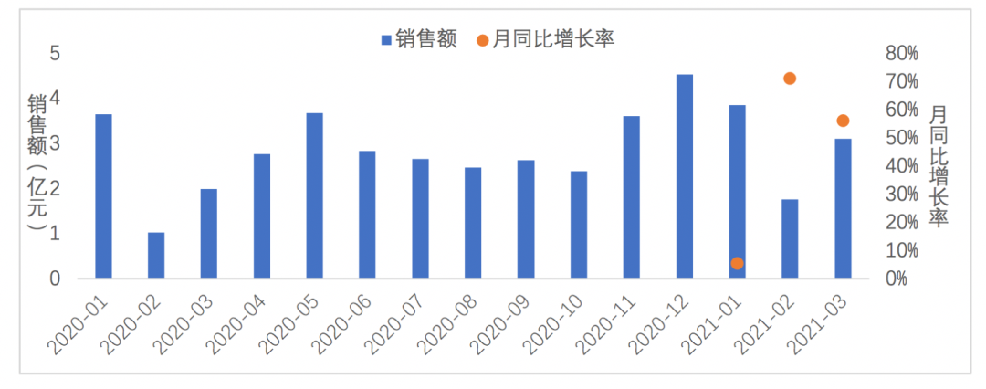 除了热点话题,魔镜市场情报根据推文分析了消费者选择购买汉服的几大场景,分别是拍照和旅行。近日随着天气回暖,很多人选择穿着汉服出门赏花、春游,成为除桃红柳绿、杏雨梨云外的又一道春日新景。让人意想不到的是,古装电视剧的火热,明星、综艺的宣传倡导,也让汉服不断出圈,文化自信不断增强。打开抖音、快手、淘宝等社交带货平台,会发现但凡涉及汉服、古装的视频都会吸引观众逗留,古装电视剧更是频频刷新热播纪录。如此高涨的汉服热潮,是否只停留在社交媒体?汉服的市场表现力如何?根据魔镜市场情报数据显示,2021年第一季度汉服市场商品交易总额达8.7亿元,同比增长31%,5月及秋冬年节时期为汉服的销售高峰;同时间段,整体服装市场一季度市场交易规模达1506亿元;2020滚动年(2020/4—2021/3)平均CR5约保持在17%,市场处于竞争状态,但Top5品牌名单构成较为固定,全年Top5品牌名单中,“重回汉唐”上榜12次,“兰若庭”上榜11次,“十三余”上榜11次。从市场表现来看,汉服市场日趋扩大,品牌也呈井喷现象。然而虽然汉服市场蓬勃发展,但规模相比整体服装市场仍较为有限,未来发展潜力巨大。此外,虽然汉服市场仍处于竞争格局,但如何冲击成为头部品牌仍是难题。与众多消费分析相同的是,汉服的整体受众中,女性是购买主力。根据魔镜市场情报显示,女性在汉服整体消费人群中占比为89%,男性为11%,品牌方面得出的结论相似,Top5品牌均以女装为主。“人人均可轻松拥有一件汉服。”此结论源自于一份分析报告:根据魔镜市场情报显示,300元以内是消费者选择服装时的主流价位段,汉服价格稍高于整体市场,但整体分布相近,价格限制购买的阻力较小,消费者在服装选择时有了更多的选择。值得关注的是,汉服的数据表现显露出汉服市场的巨大潜力,但如何让汉服这把“火”持续燃烧,还需要更多积极正向的引导与传播。精彩推荐: