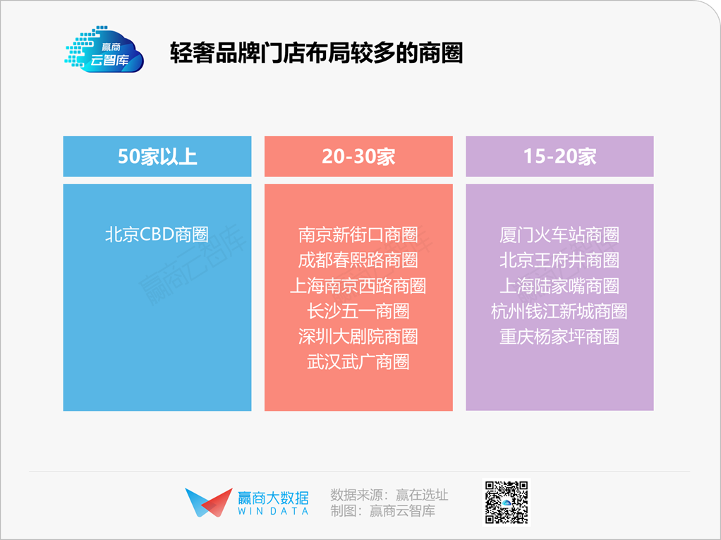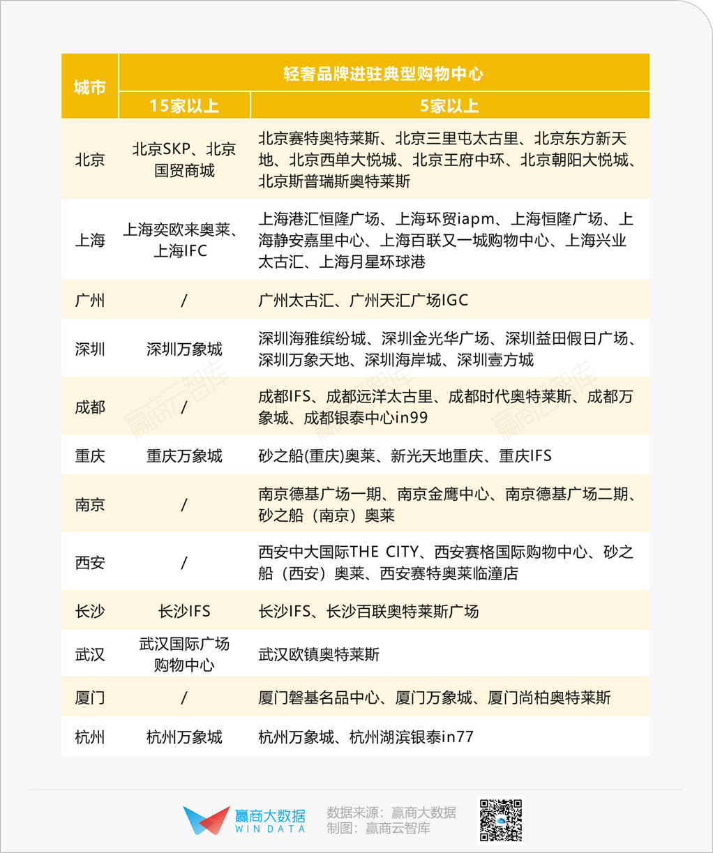 而从赢商云智库统计的33个轻奢品牌、超800家门店,可看出:当前轻奢品牌在国内市场的布局特征可分为“覆盖型”、“拓展型”、“试水型”。