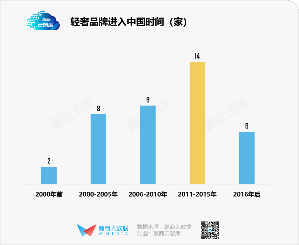 高峰期(2011-2015年):Michael Kors、Kate Spade New York、MCM等品牌集中涌入,并将拓展范围延伸至更多省会城市、二线城市。与此同时,随着微博、微信公众号兴起,中国消费者获取海外时尚资讯渠道拓宽,对轻奢品牌的关注度进一步提升。