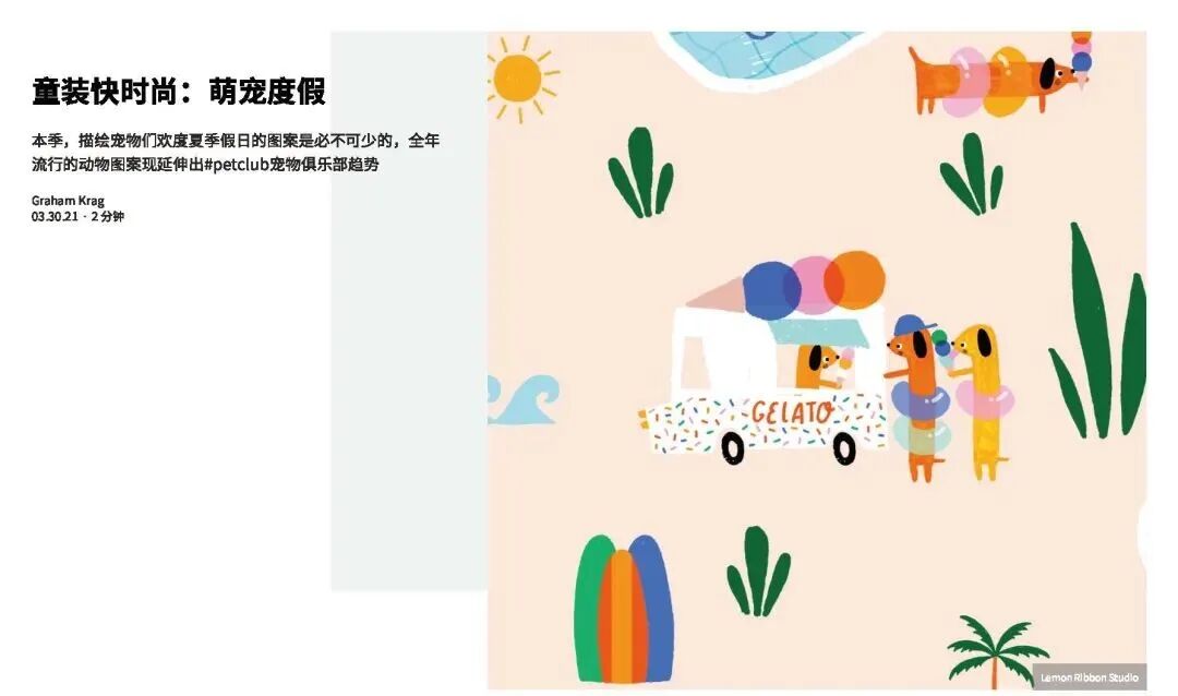 市场对宠物主题图案的需求继续上涨,影响夏季上新的童装。