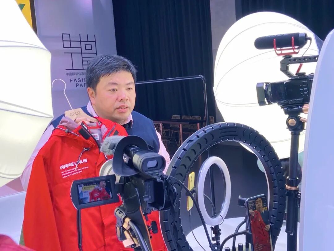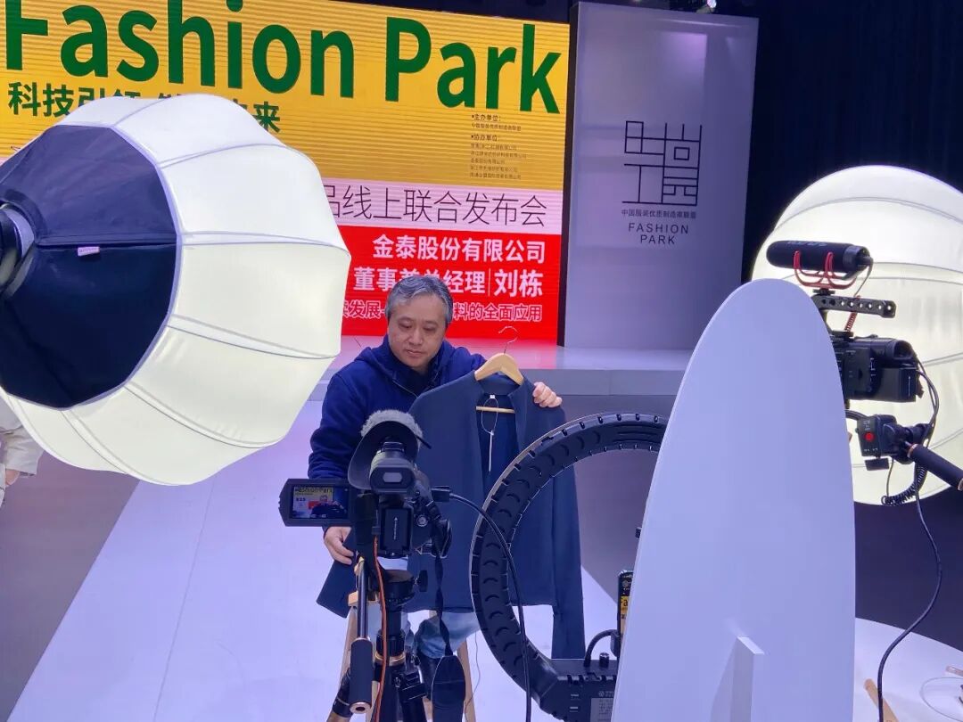 直播过程中,李总监通过面料展示、产品应用解说和上身试穿等多种方式向大家展示了作为一家成熟纺织企业所具备的科技创新工艺。