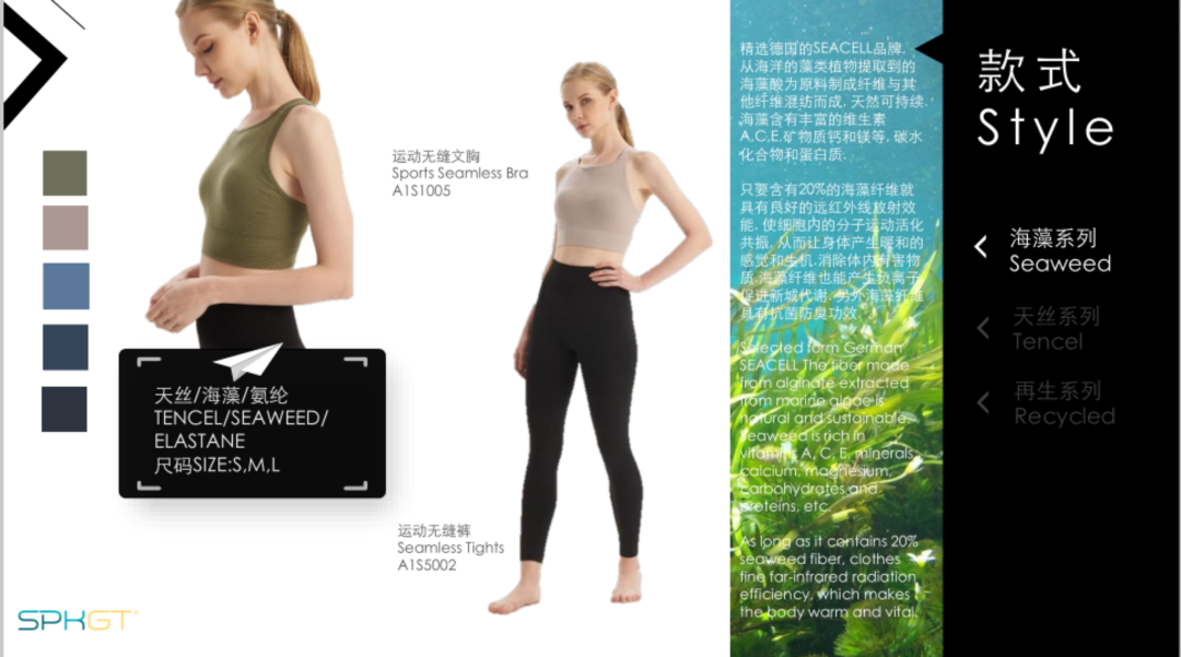 另外,刘总还向大家重点推荐了由海藻纤维、天丝及氨纶混纺制成的纱线产品,该海藻酸纤维是从北欧海域藻类植物中提取的海藻酸为原料制成,具有良好的红外放射销能,活化细胞分子,产生负离子,消除体内有害物质,促进新陈代谢。
