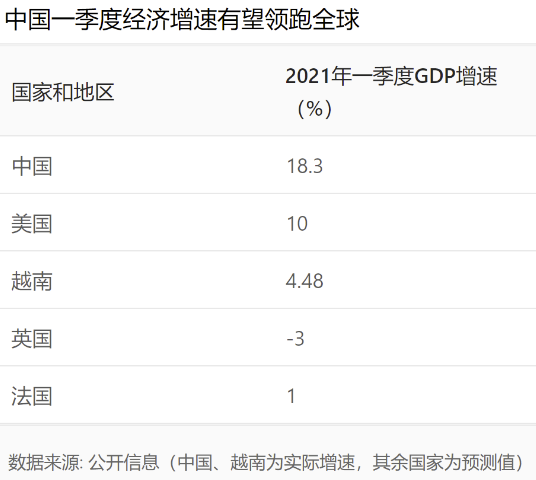 国家统计局4月16日公布的数据显示,初步核算,一季度国内生产总值(GDP)249310亿元,按可比价格计算,同比增长18.3%。