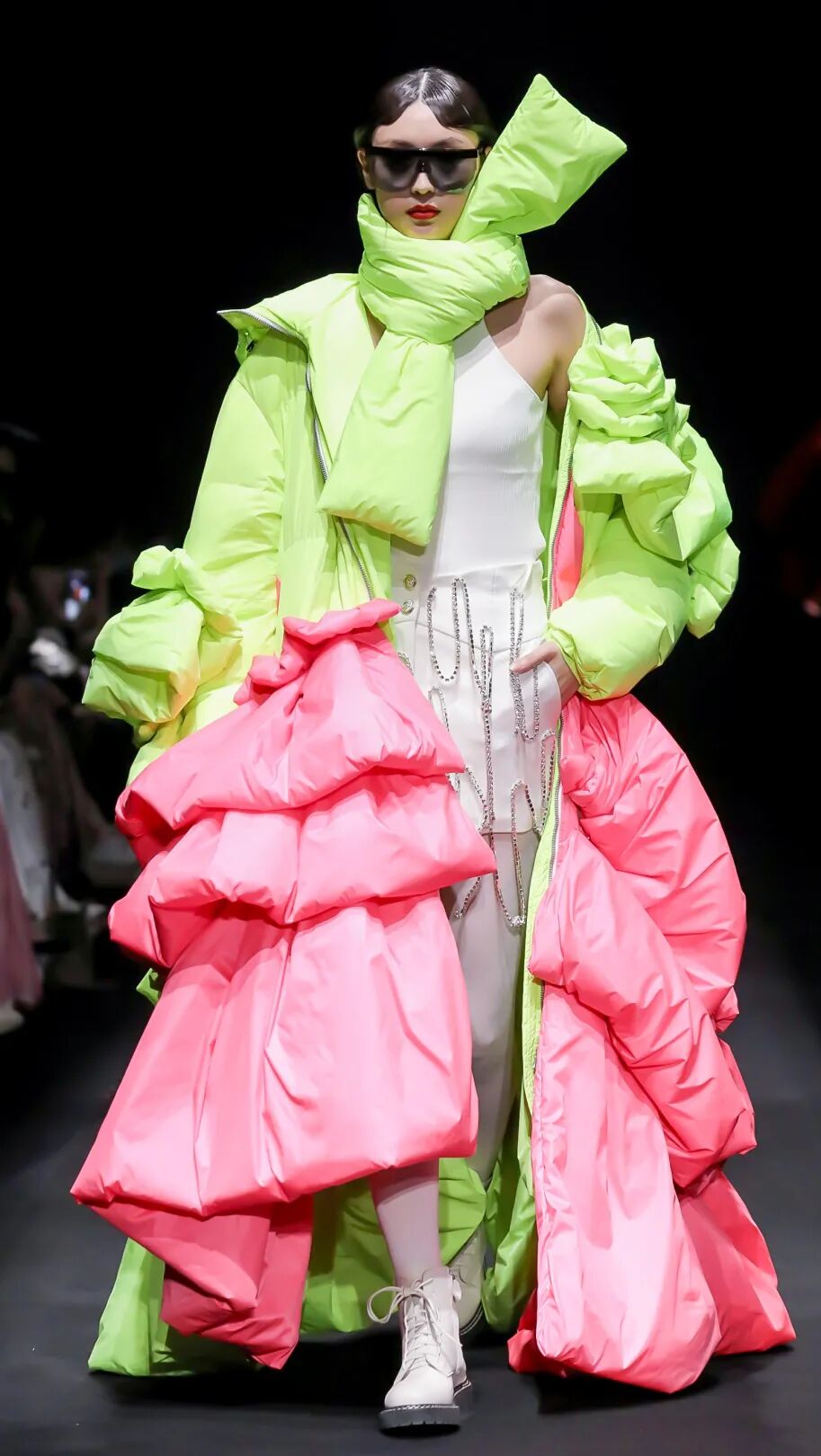 本季羽绒服被设计师们玩出了新花样,印象中的羽绒服只有臃肿难看?NONONO,它也可以炫酷且时尚,CHICCO MAO于细节彰显潮流感;Leaf Xia colorwonderland和YOUG X以色块拼接赋予羽绒服全新面貌;DEMAINZ、Comunque Yang和白鹿语将羽绒服设计为裙装;WANMAY设计还打造出了“羽绒裤”,在保暖的同时诠释新颖设计。