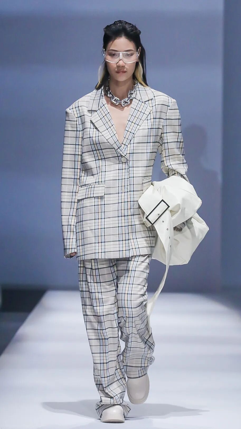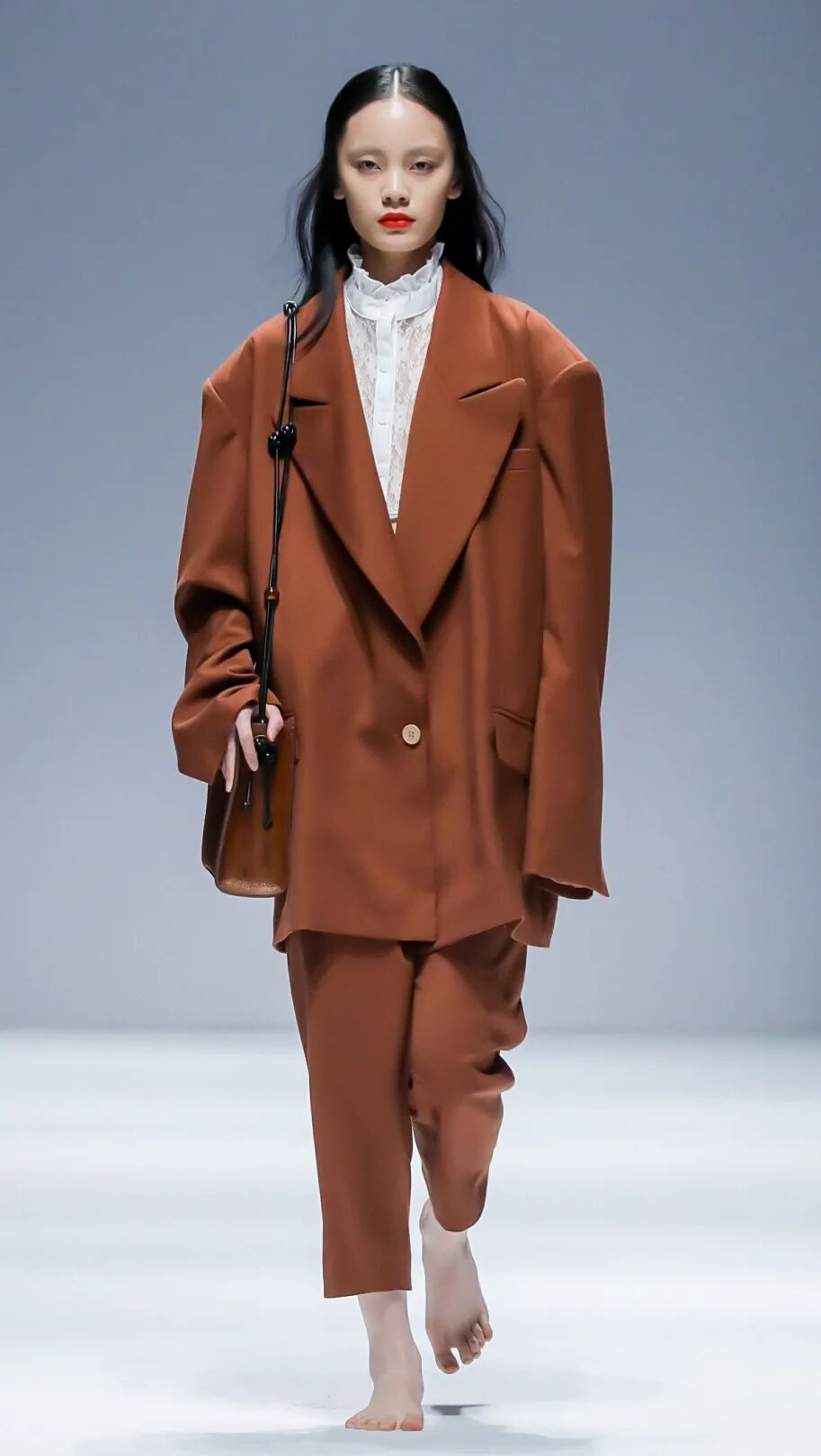 Oversize西装是当下最流行的单品之一,无论是日常出街,还是在T台秀场上,总少不了它的身影。自独立女性意识崛起,西装便成为其标志性搭配。在2021秋冬中国国际时装周的T台上,DAMOWANG、MoHanYun、迪丝嫚苓、木子山禾、CHEN.1988、D.MARTINA QUEEN、JUMPER_ZHANG、LYNEE、MACKZHENG等品牌均展示了Oversize西装款式,塑造出女性飒气十足的一面。