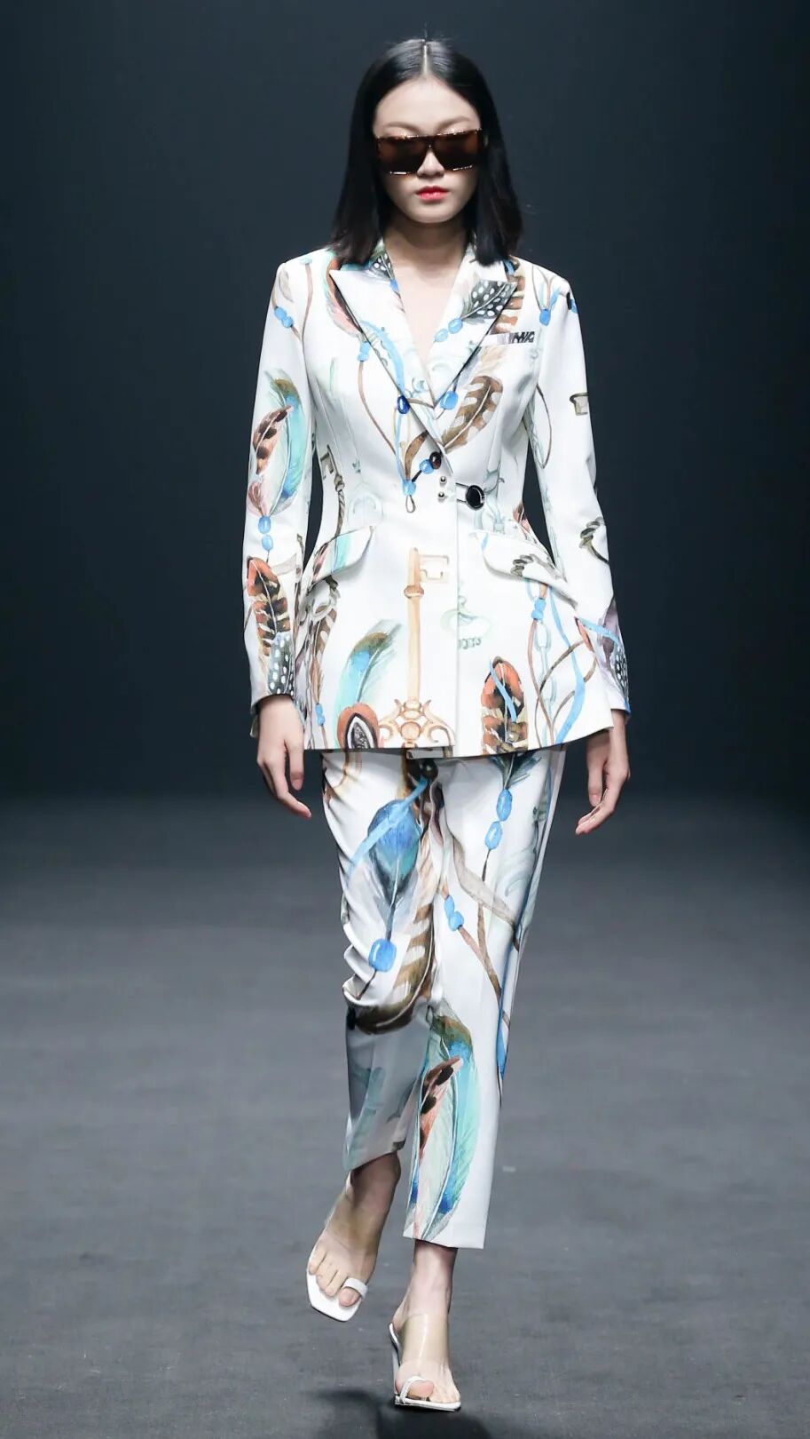 品牌Logo、自然岩石、不规则几何、动物纹样、科技感线条等多种类型的印花被设计师们应用在设计中,如JUMPER_ZHANG、WANMAY、欧蒂芙、木子山禾、DAMOWANG、熏若、CALICO Collection、随简、沫兮等品牌中均涵盖大面积印花的设计,诠释潮流感。