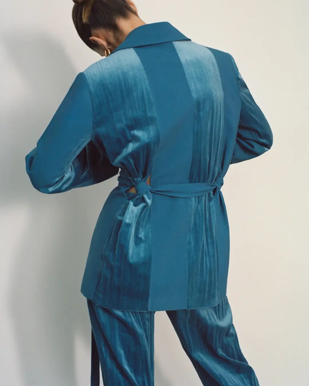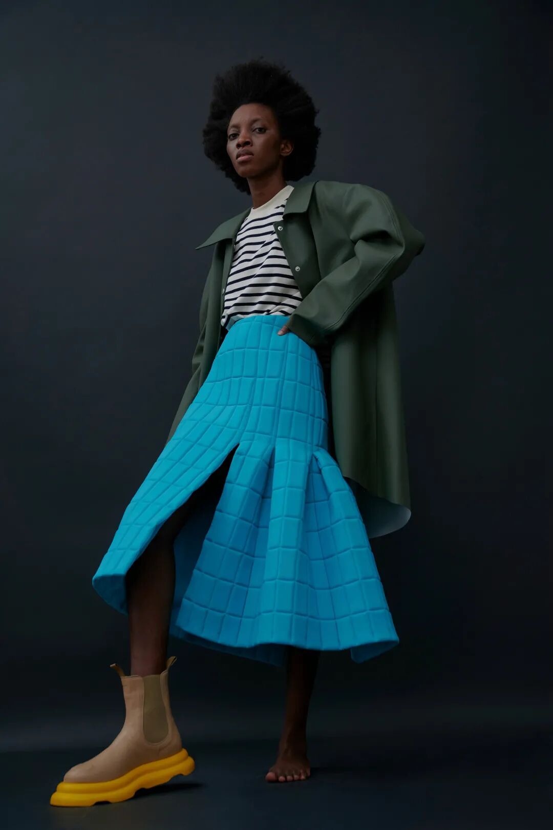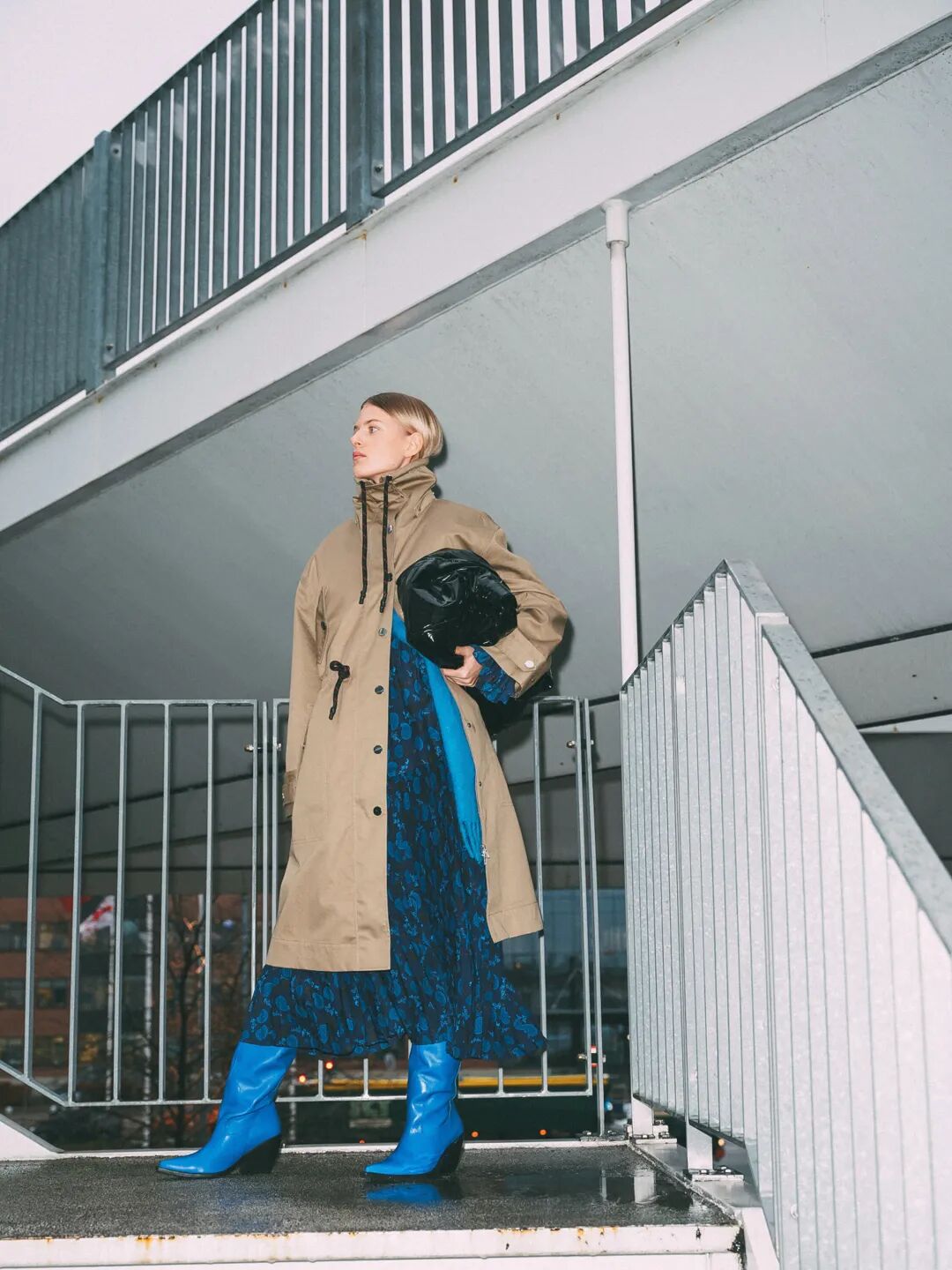 使用智能蓝作为季节性亮色,推出系列必备单品、单件、连衣裙与年轻化廓形。建议用作个性亮色,搭配斜挎包、托特包与鞋品。