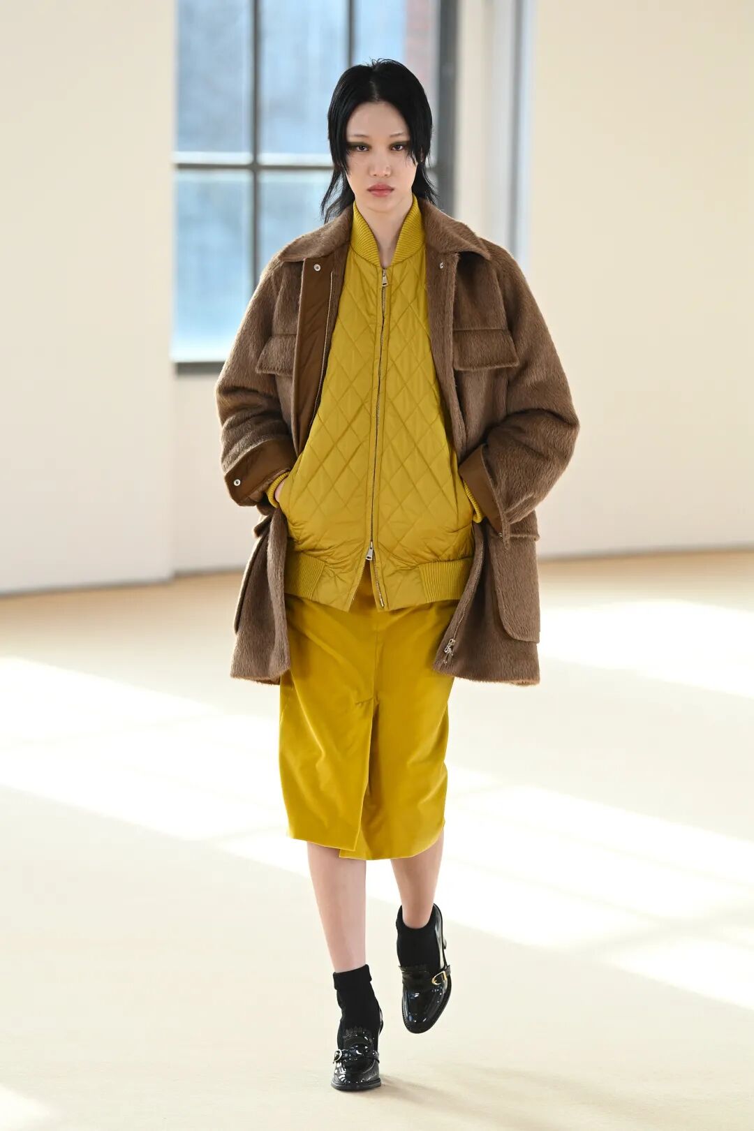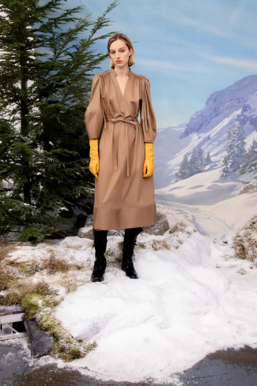 作为外套必备色彩,该色调的最大应用增幅却出现在连衣裙类别中,因此,不妨使用松露色来搭配慵懒午夜或居家派对式廓形。该色调与中性色/米白色的经典配色方案依然至为重要,但棕色与冬季亮色的撞色效果无疑更具新意。