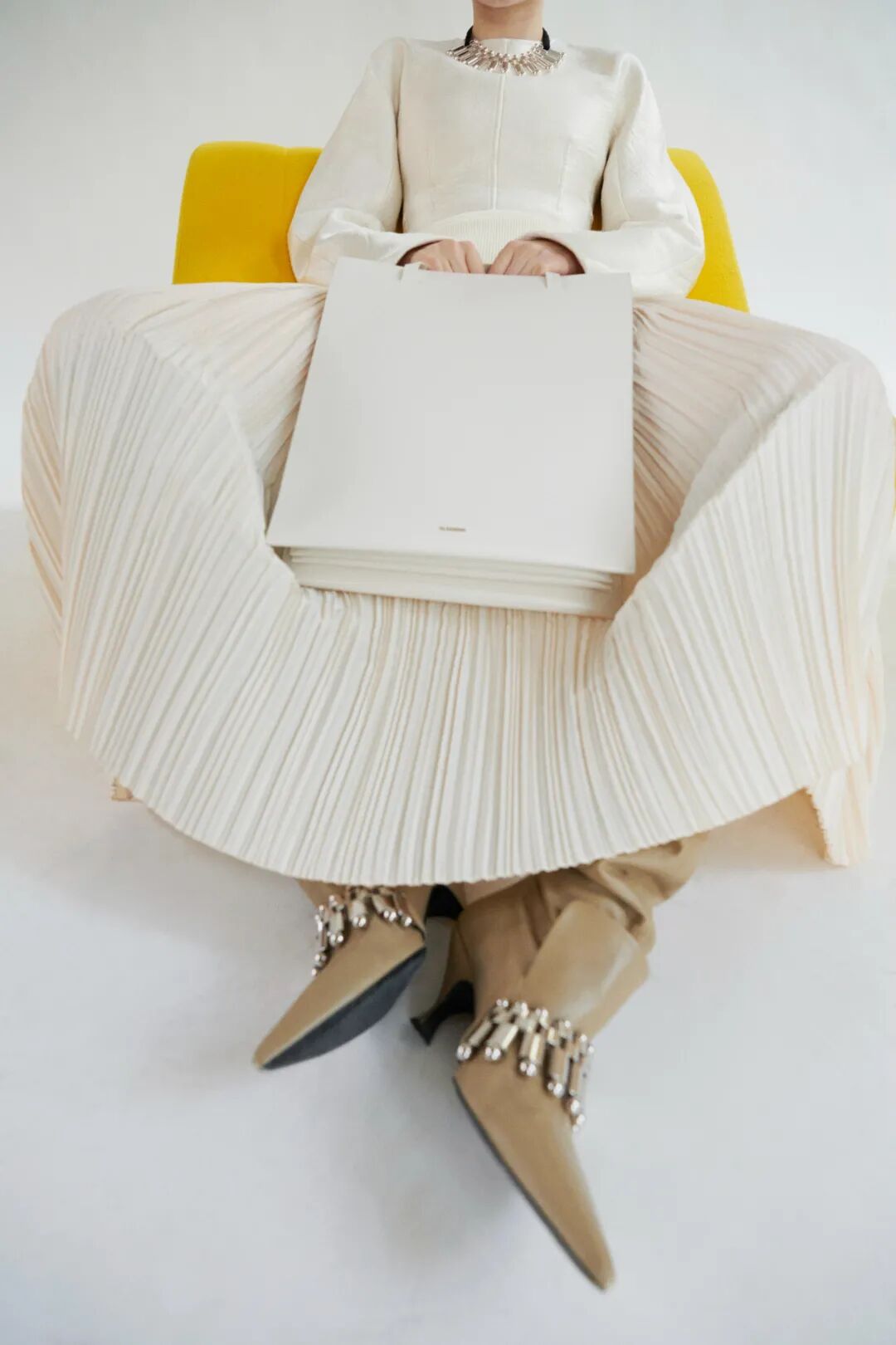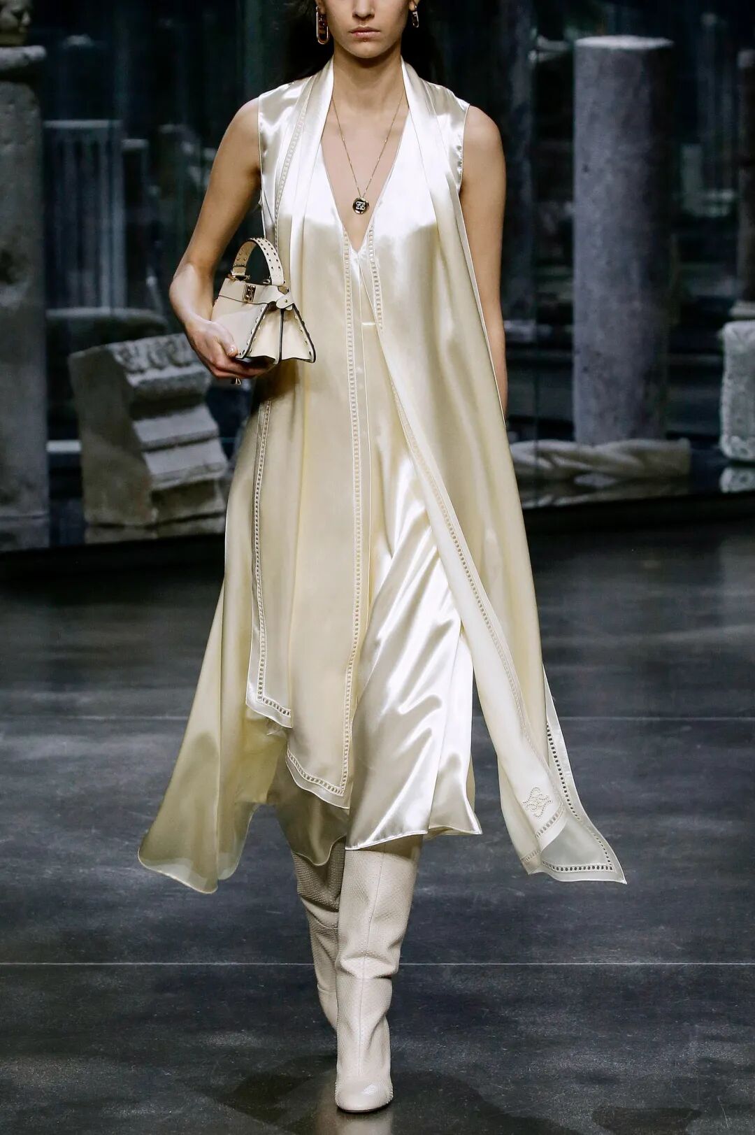 鉴于触感仍然是设计要点,不妨使用柔软的奶油感皮革、毛绒面料或者人造毛皮,尽显柔软量感与极致舒适风尚。考虑到中性色是奢侈品包袋增长最快的色彩之一,也是鞋品及配饰表现最佳的一款配色,请优先推出靴款、手包与过肘长袖手套。
