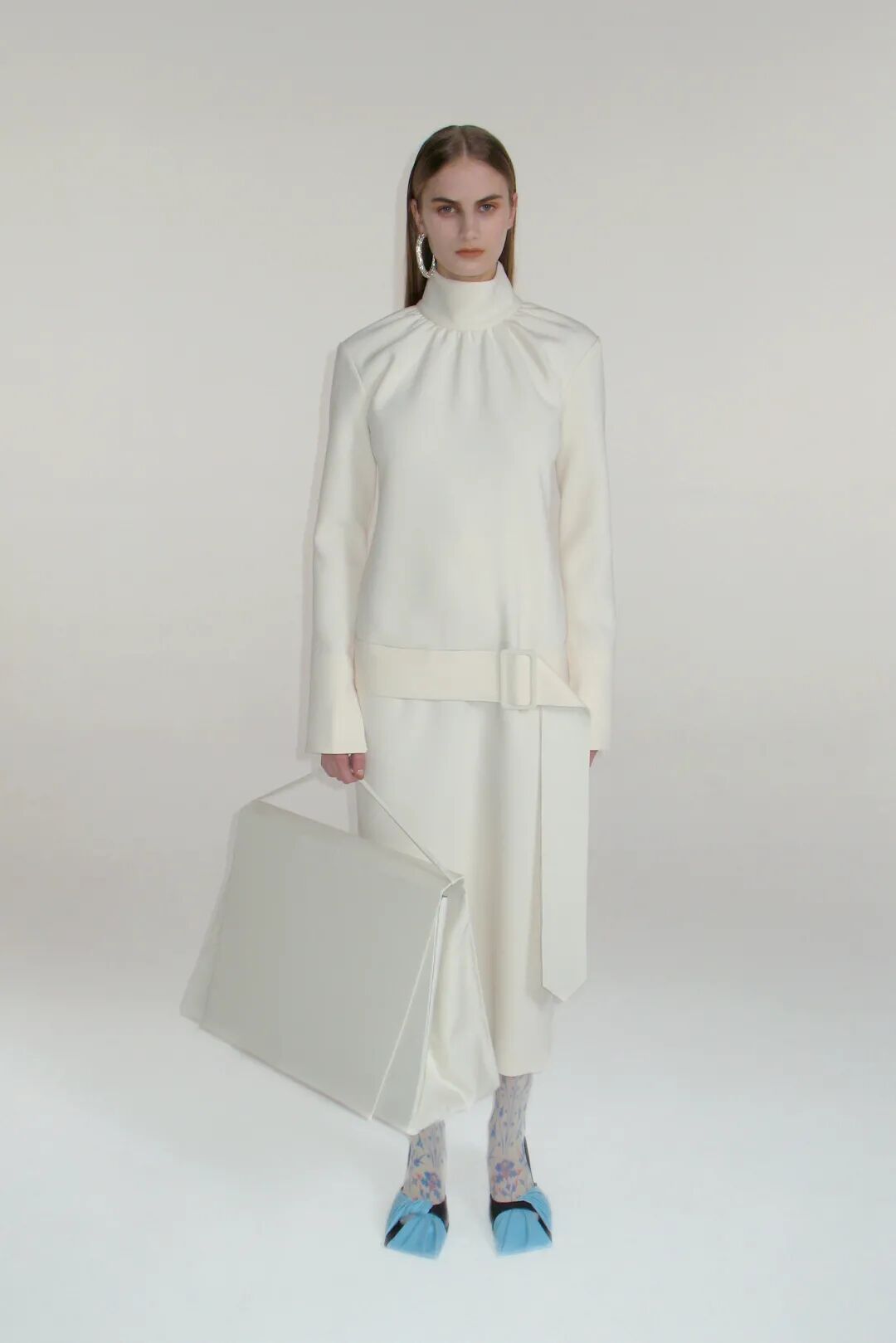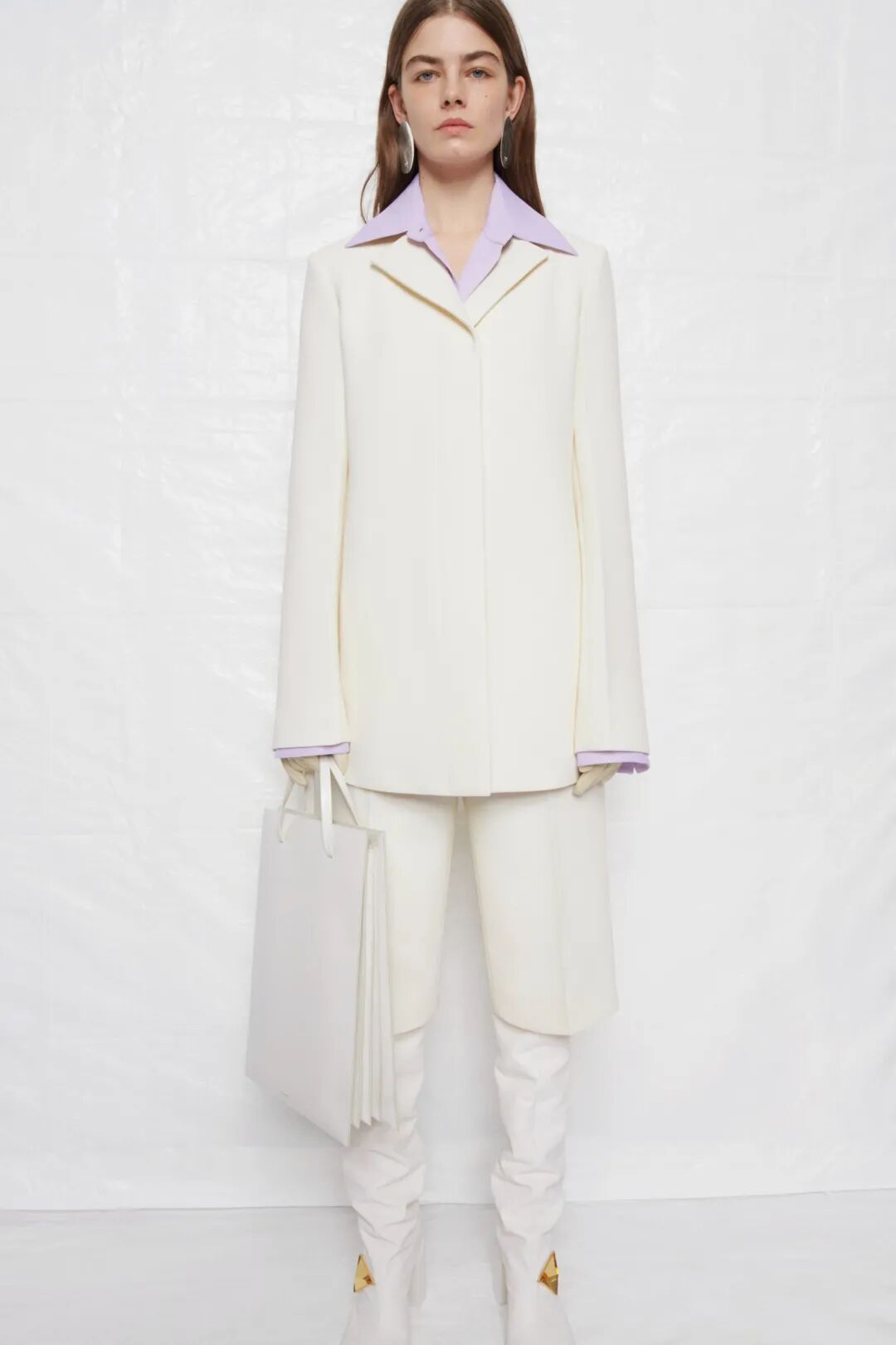 白色依旧是本季的主色调,淡淡的米白色也随之席卷各大城市。暖调乳白色的流行趋势表明,柔和的未染中性色比冷淡风格的光学白更具市场空间。