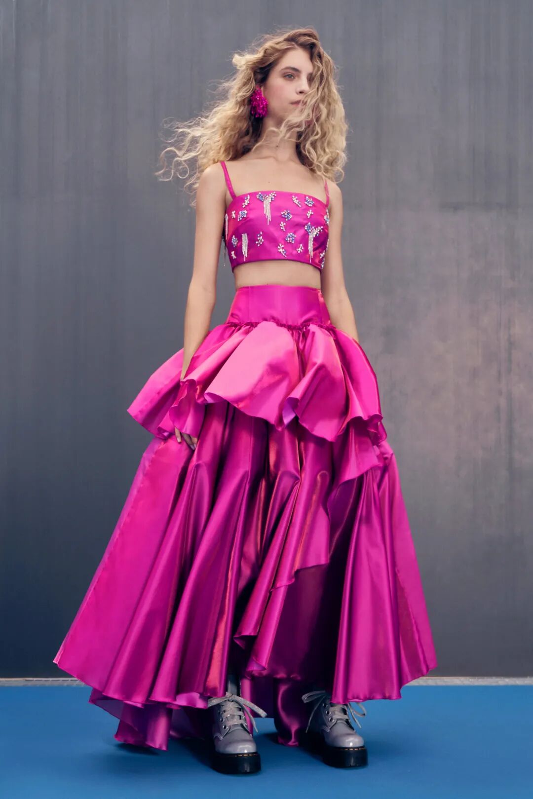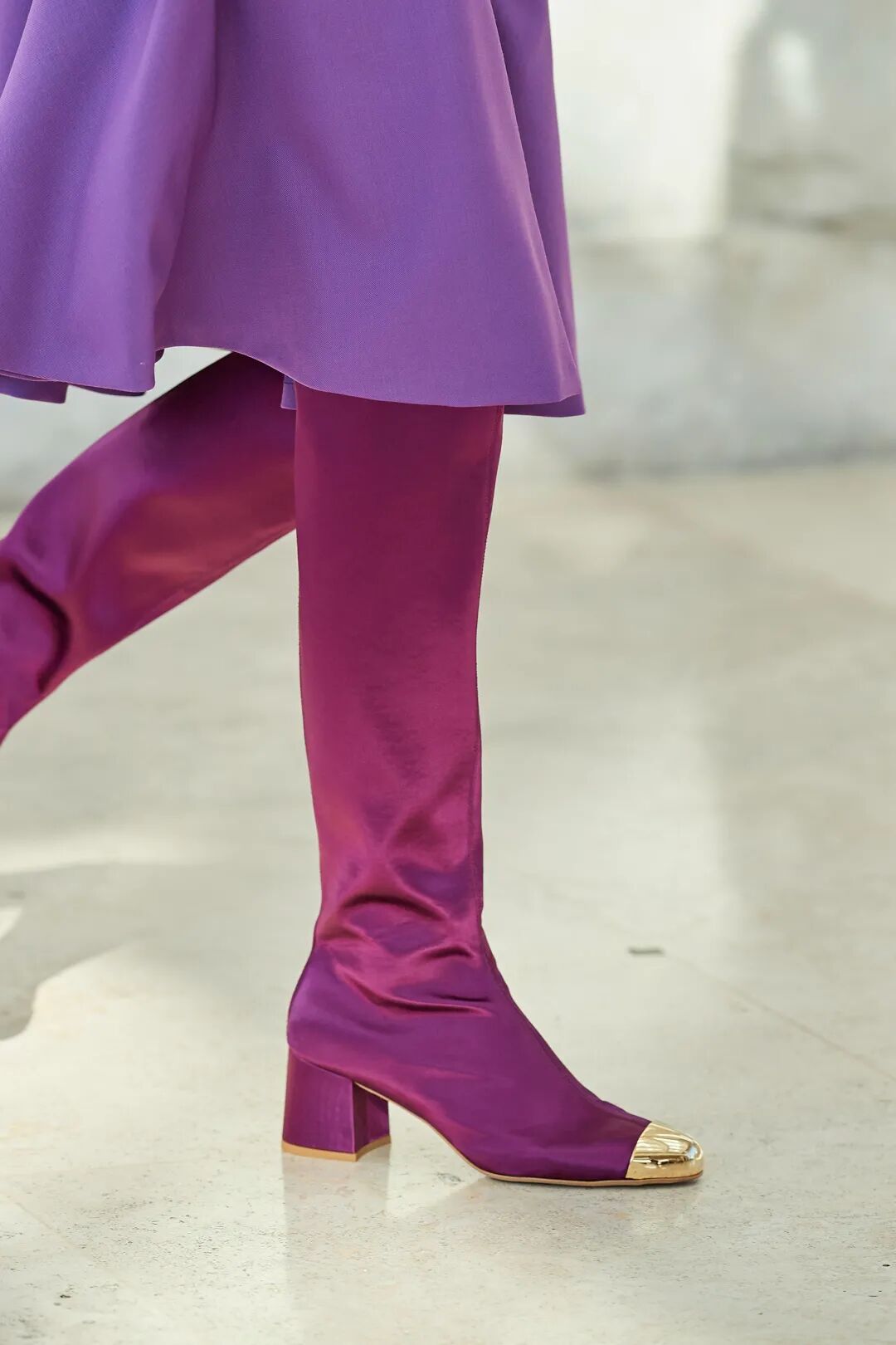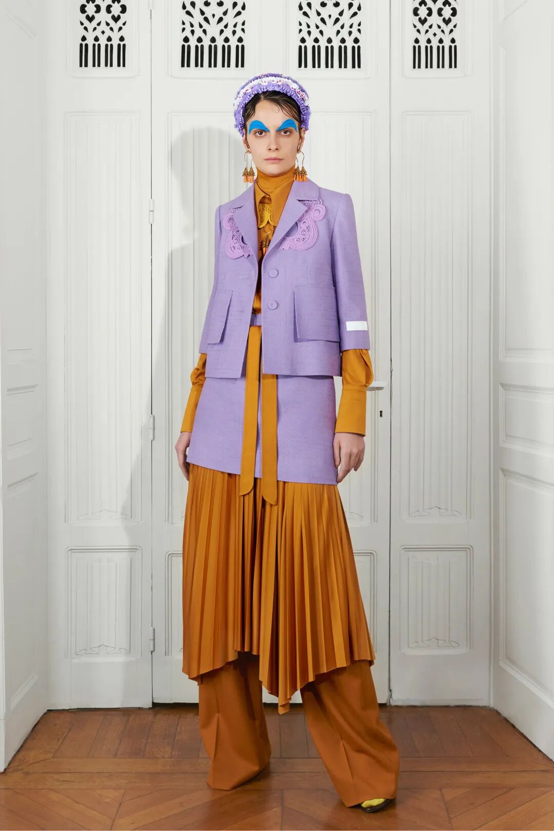 本季设计师减少了粉色使用量,转而聚焦饱和玫红色,即2022年关键色彩。作为颇具看点的一款色彩,蝴蝶兰洋溢着欢乐气息,亦呼应着未来几季的乐观情绪。