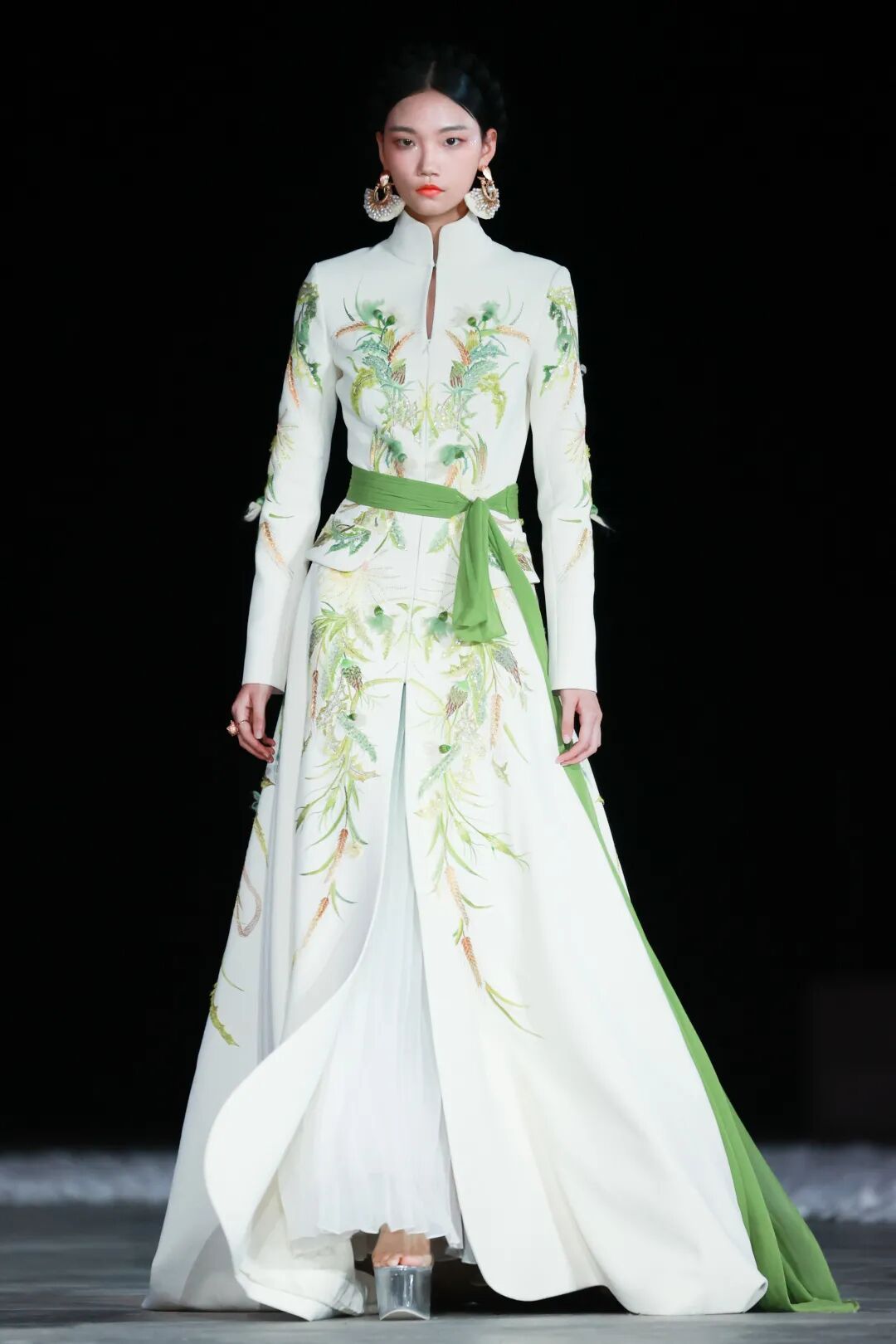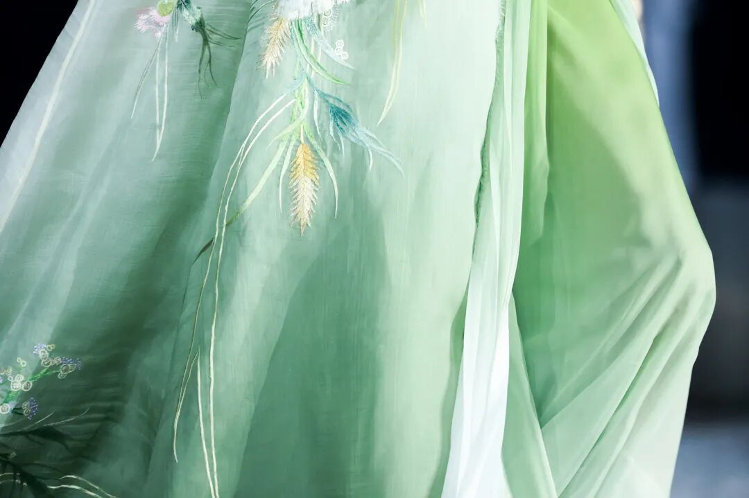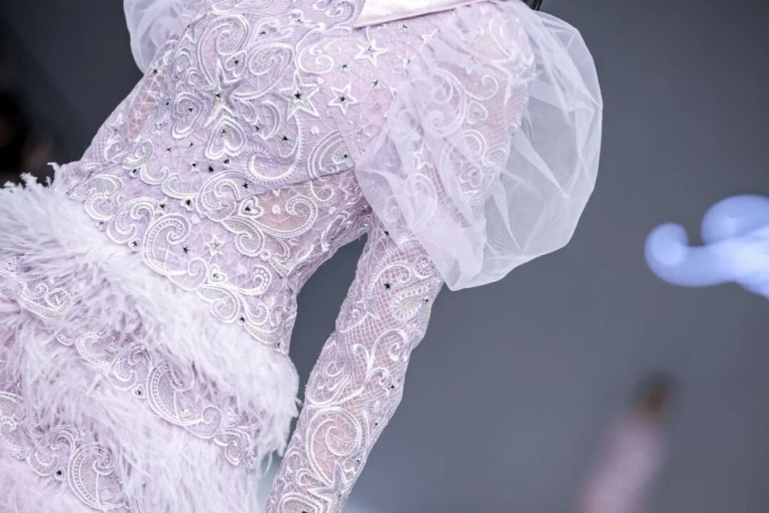 盖娅传说服饰基于中国非遗工艺和西式轮廓剪裁,把国风艺术运用到服装里,致力于将中国传统文化转化为独特的服饰美学,本季设计中引用到苏绣、纳纱绣、打籽绣、金丝绣、盘金绣等中国传统刺绣工艺,诠释非遗工艺设计之美。