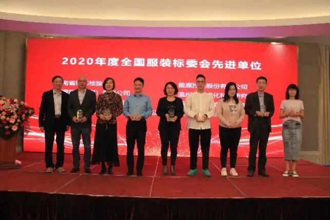会上,全国服装标准化技术委员会、中国服装协会标准化技术委员会分别对先进单位和先进个人进行表彰,全国服装标准化技术委员会副秘书长杨秀月和中国服装协会科技部高级项目主任龚迎秋分别宣读了全国服装标准化技术委员会和中国服装协会标准化技术委员会表彰文件。全国服装标准化技术委员会对上海纺织集团检测标准有限公司等8 家单位授予“标准化工作特殊贡献奖”,对九牧王股份有限公司等18 家单位授予“标准化工作先进单位”,对王彩云等20 位委员授予“标准化工作先进个人”,对上海天祥质量技术服务有限公司等6 家单位授予“一带一路”中国标准外文版工作杰出贡献奖;中国服装协会标准化技术委员会对上海纺织集团检测标准有限公司等10 家先进单位、王彩云等22 位先进个人予以表彰。(名单见附件)