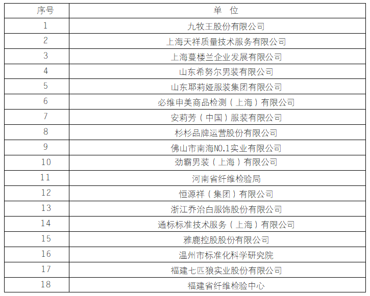 附件2:2020年度全国服装标准化技术委员会“标准化工作先进单位”