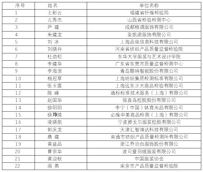 全国服装标准化技术委员会、中国服装协会标准化技术委员会秘书周双喜