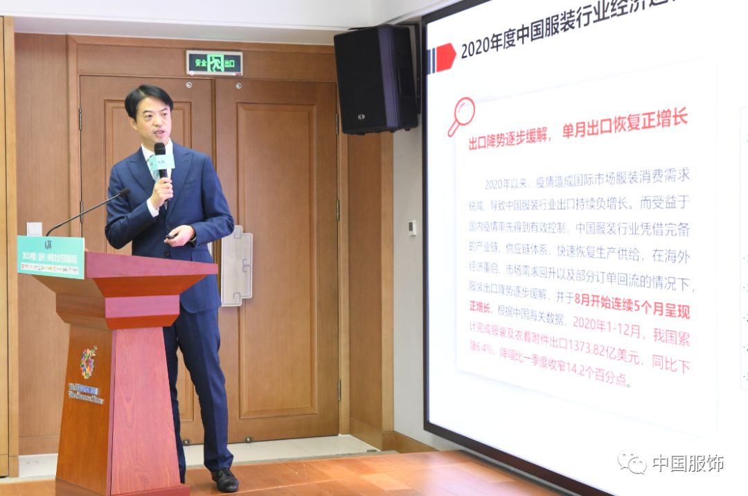 中国服装协会常务副会长、中国服装科创研究院院长杨金纯进行了主题演讲,分享了2020年度中国服装产业经济运行情况,并解析了中国服装行业的“高质量发展”之路。他表示,未来无论产业、企业都要紧紧围绕为消费者提供优质的产品、卓越的性能和情感的体验,在发展中要发现变化、感知变化、尊重变化,不断创新。