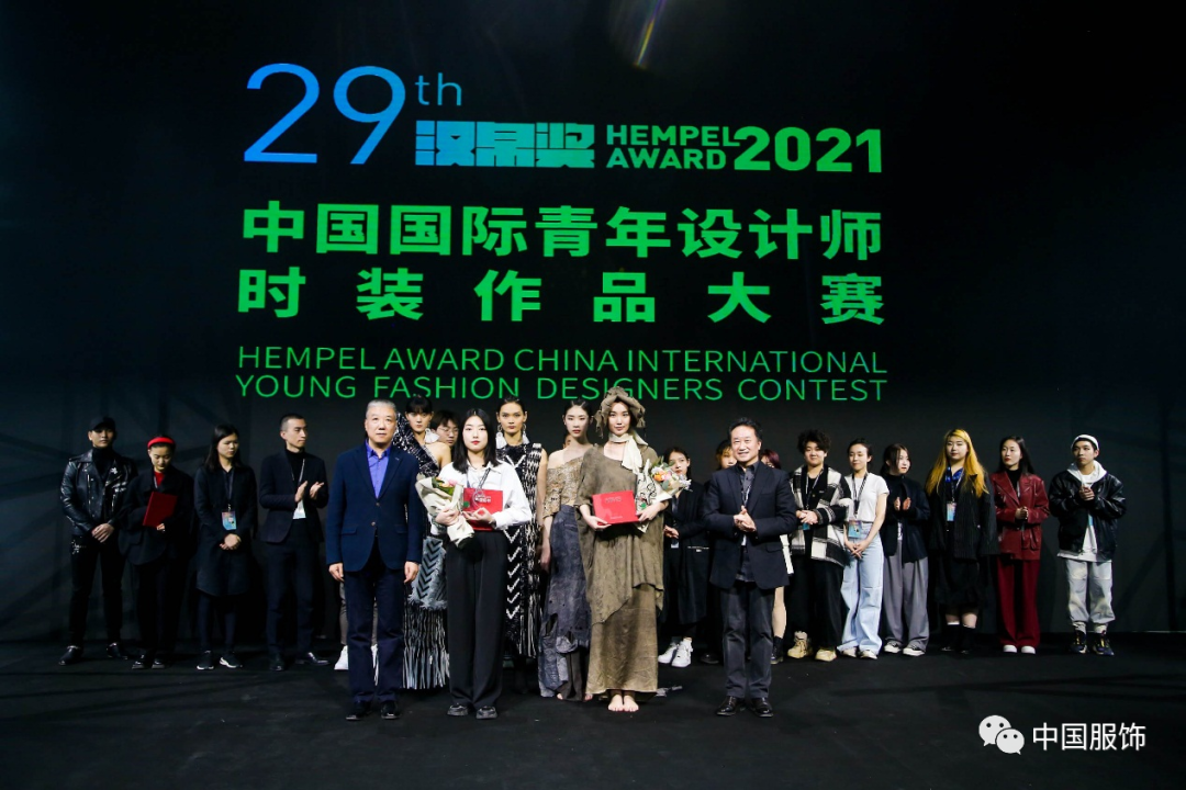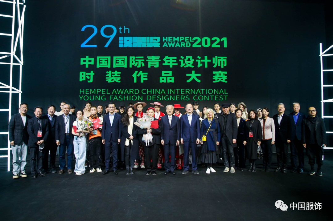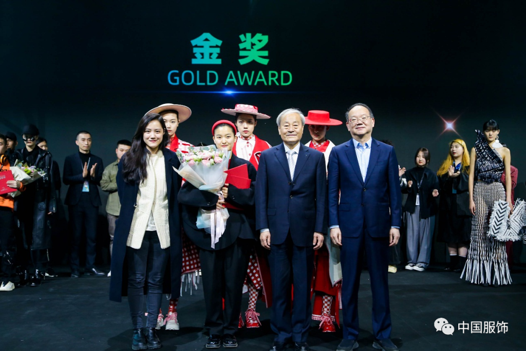 中国纺织工业联合会原会长杜钰洲、中国纺织工业联合会党委书记高勇、汉帛国际集团总裁高敏为金奖选手颁奖