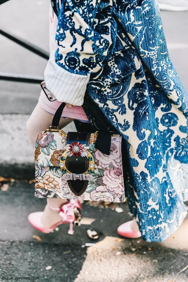 把印花作为配饰,既有画龙点睛的效果,又不至于累赘。比如一款印花包包,就真的很抢眼球。冬日搭配里说过很多次丝巾的作用,选一条印花丝巾系脖子,就可以很好点亮整体。现在还有很多时髦精把丝巾绑在包包在,让包包充满了活力,都是不错的印花运用。