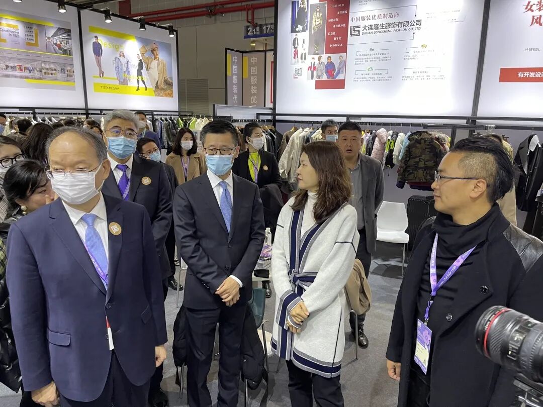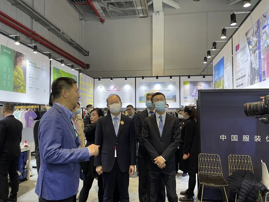 开展伊始,会场就迎来高光时刻。中国纺织工业联合会党委书记兼秘书长高勇,中国纺织工业联合会副会长、中国服装协会会长陈大鹏等领导莅临时尚工园展区,进行视察指导工作。