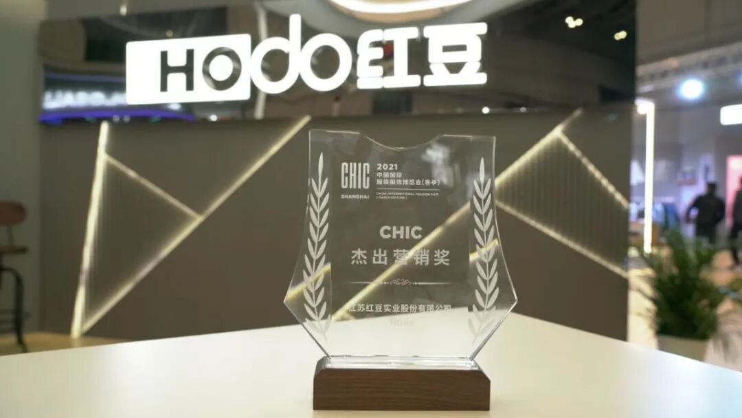凭借出色的创意营销方式,红豆男装牢牢抓住用户的消费心理,拉近与用户的距离,收获了行业和消费者的肯定与认可,成绩斐然。本次CHIC2021春季上海服装展,红豆男装更是在众多展位商和品牌中脱颖而出,一举斩获“CHIC杰出营销奖”。