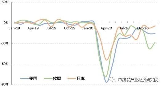 注:美国公布的2020年纺织品服装进口数据不包括口罩,欧盟和日本的进口数据中包括口罩。