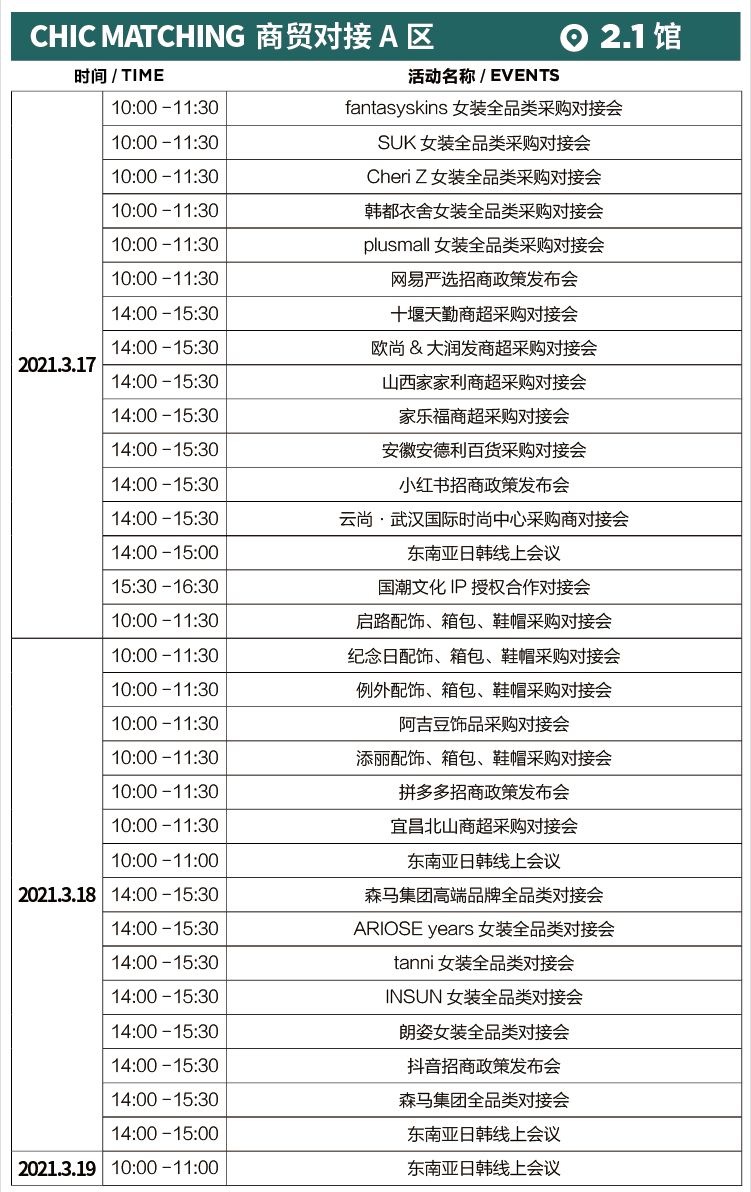 值得注意的是,今年的商贸对接会分为A区、B区,分别位于2.1馆、3馆。请大家详细阅读日程详情,记准时间与位置,合理安排行程。