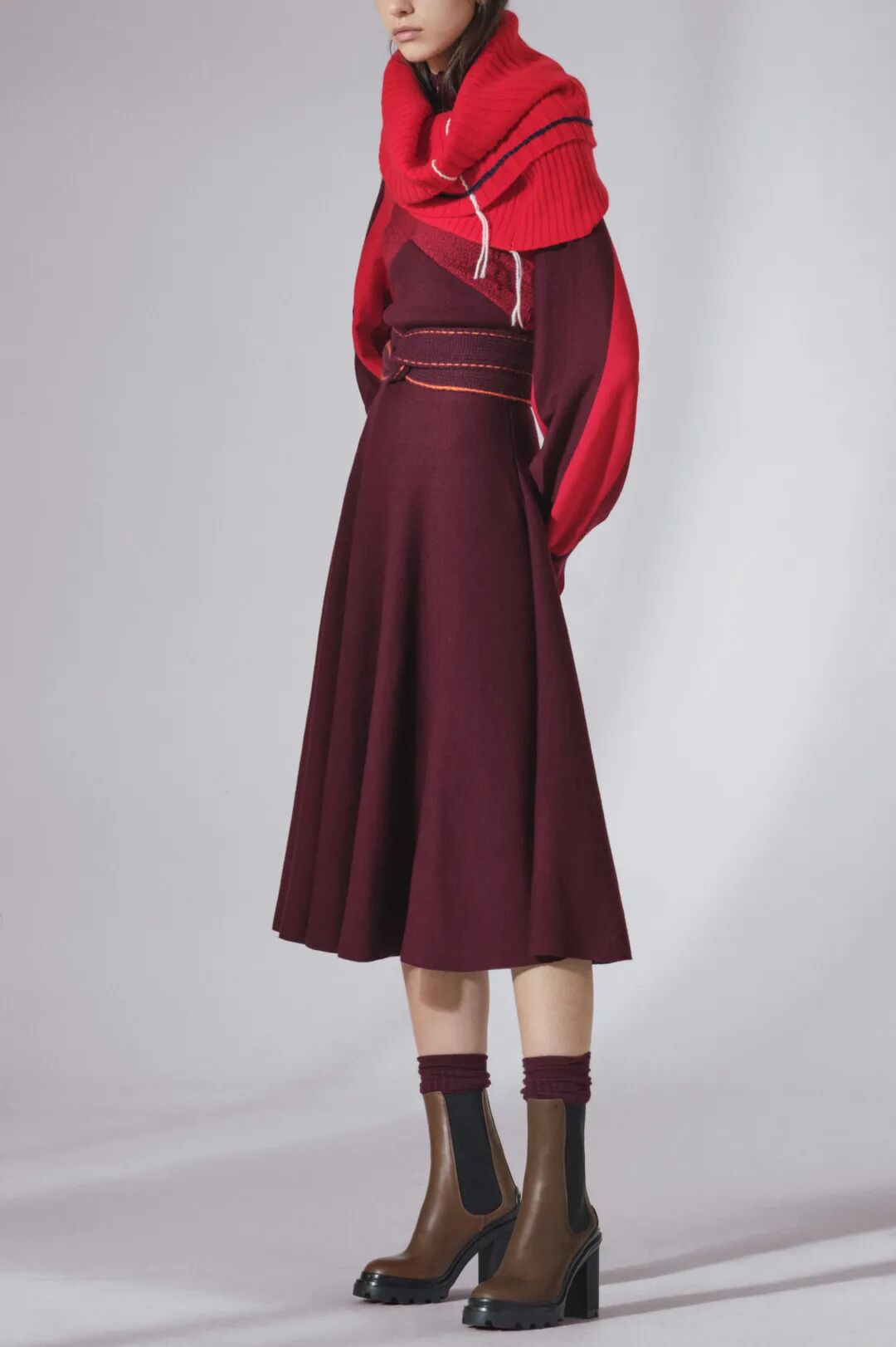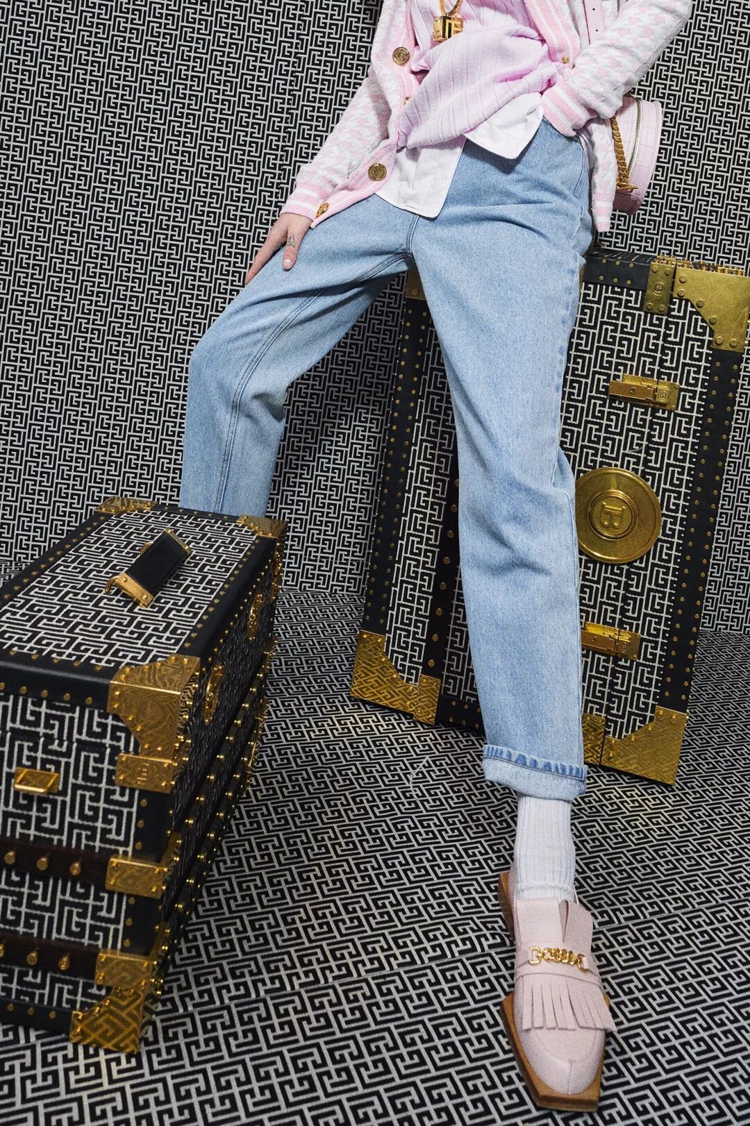 #新派学院风主题启发灵感,个性美学更新洋裁款型。可参考Balmain的外扩鞋底和挺括鞋面,并以油灰粉加以柔化
