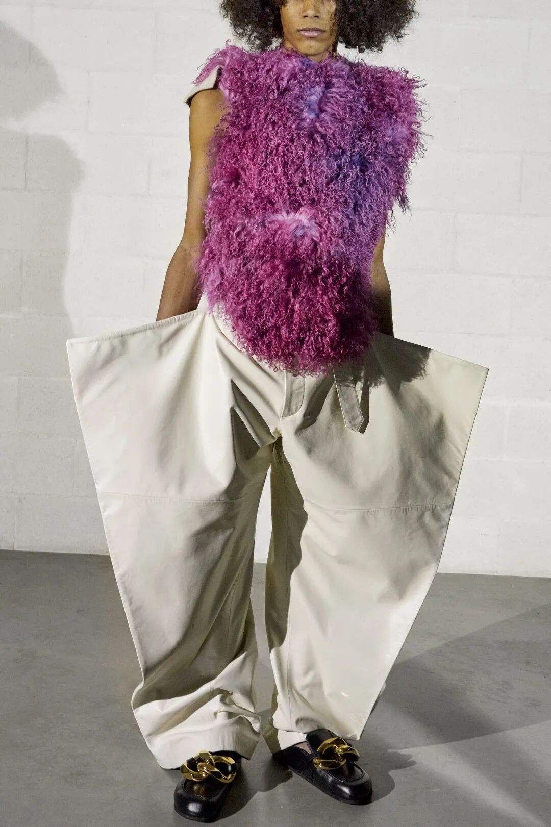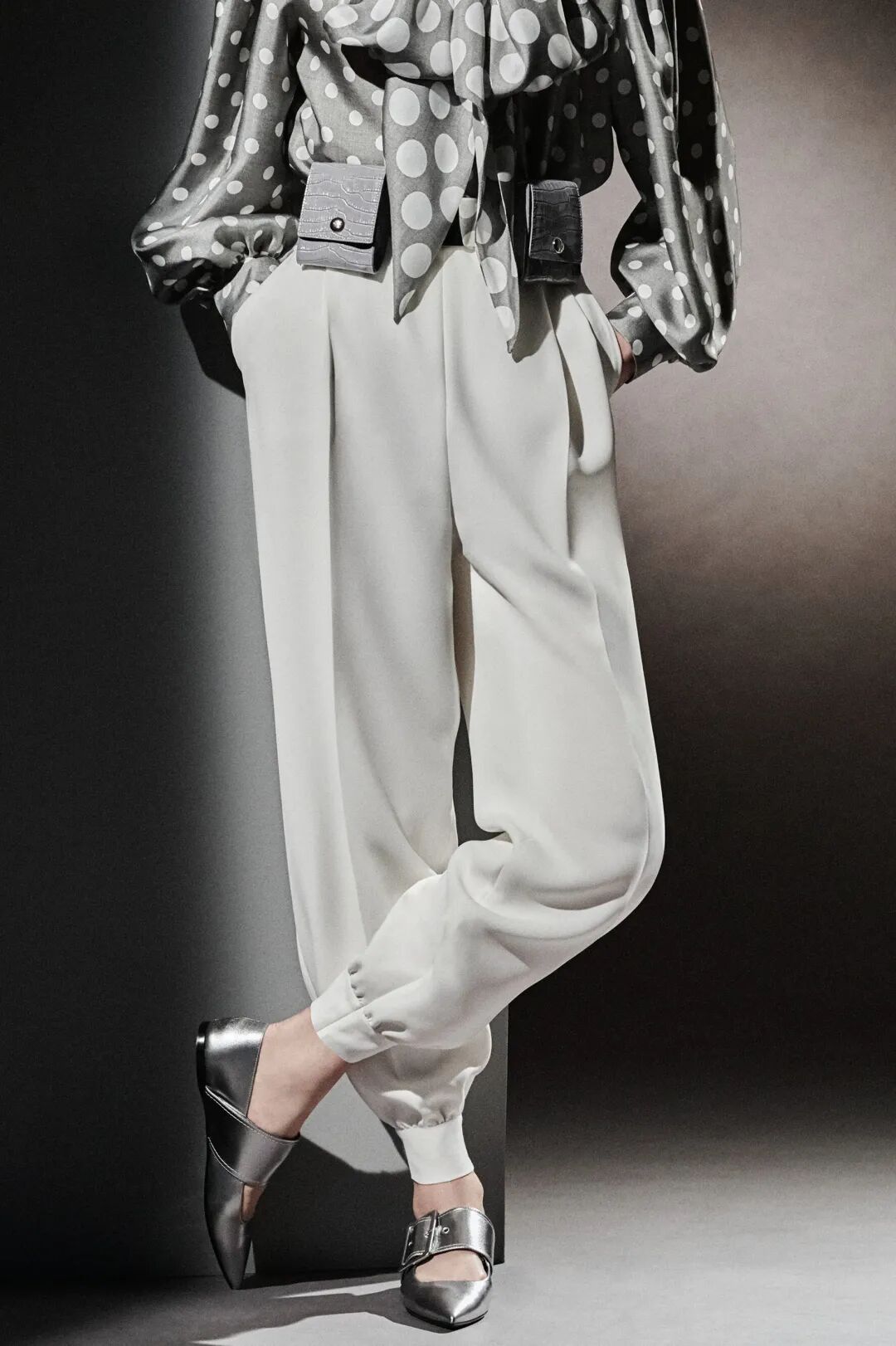 宽条带和超大#金属配件更新玛丽珍鞋。Max Mara以银色单色设计展现#极简美学