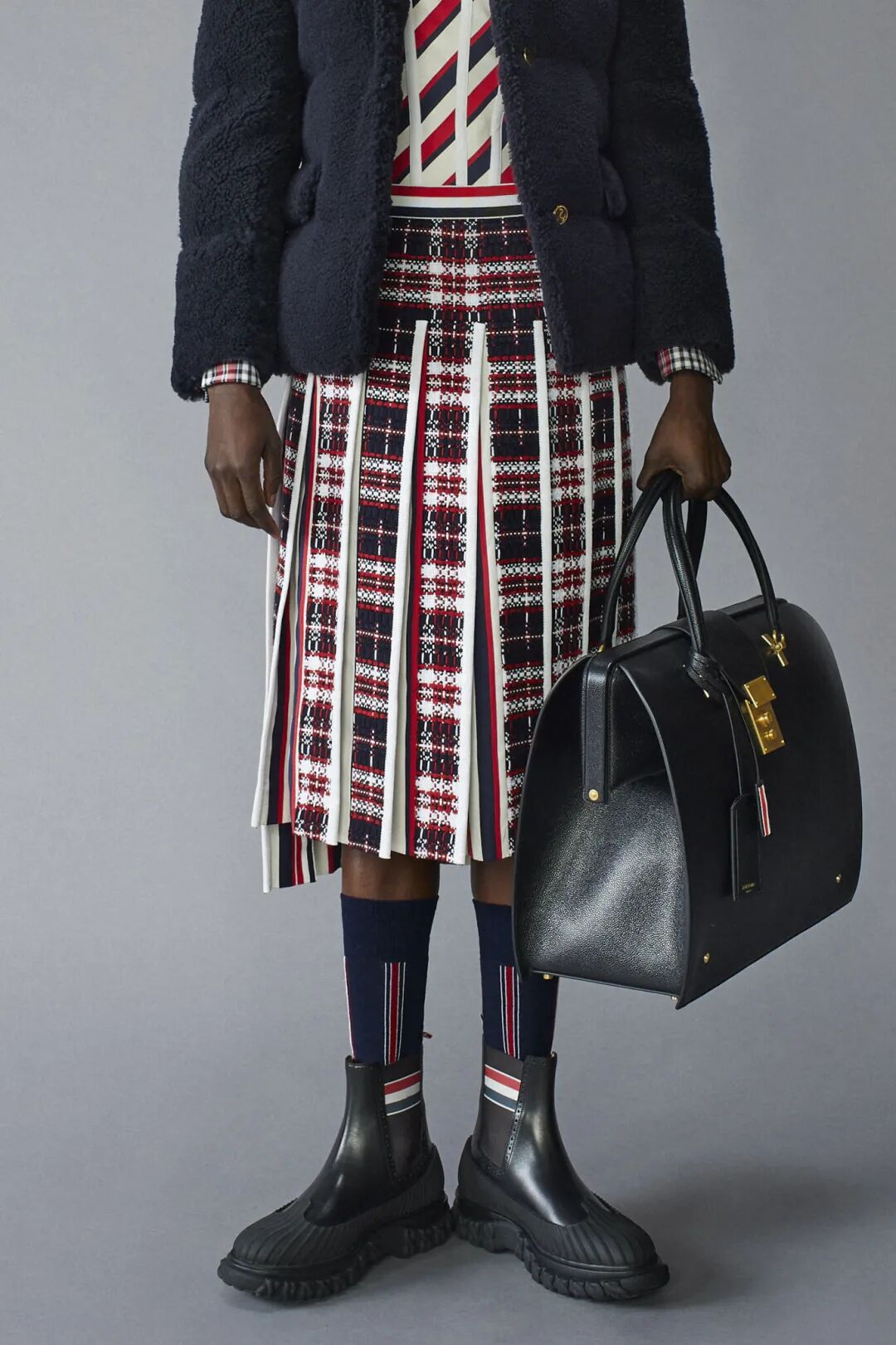 该款型是多个市场的关键单品,#genderinclusive性别包容性设计将功能性与经典外观相结合,如Thom Browne所示