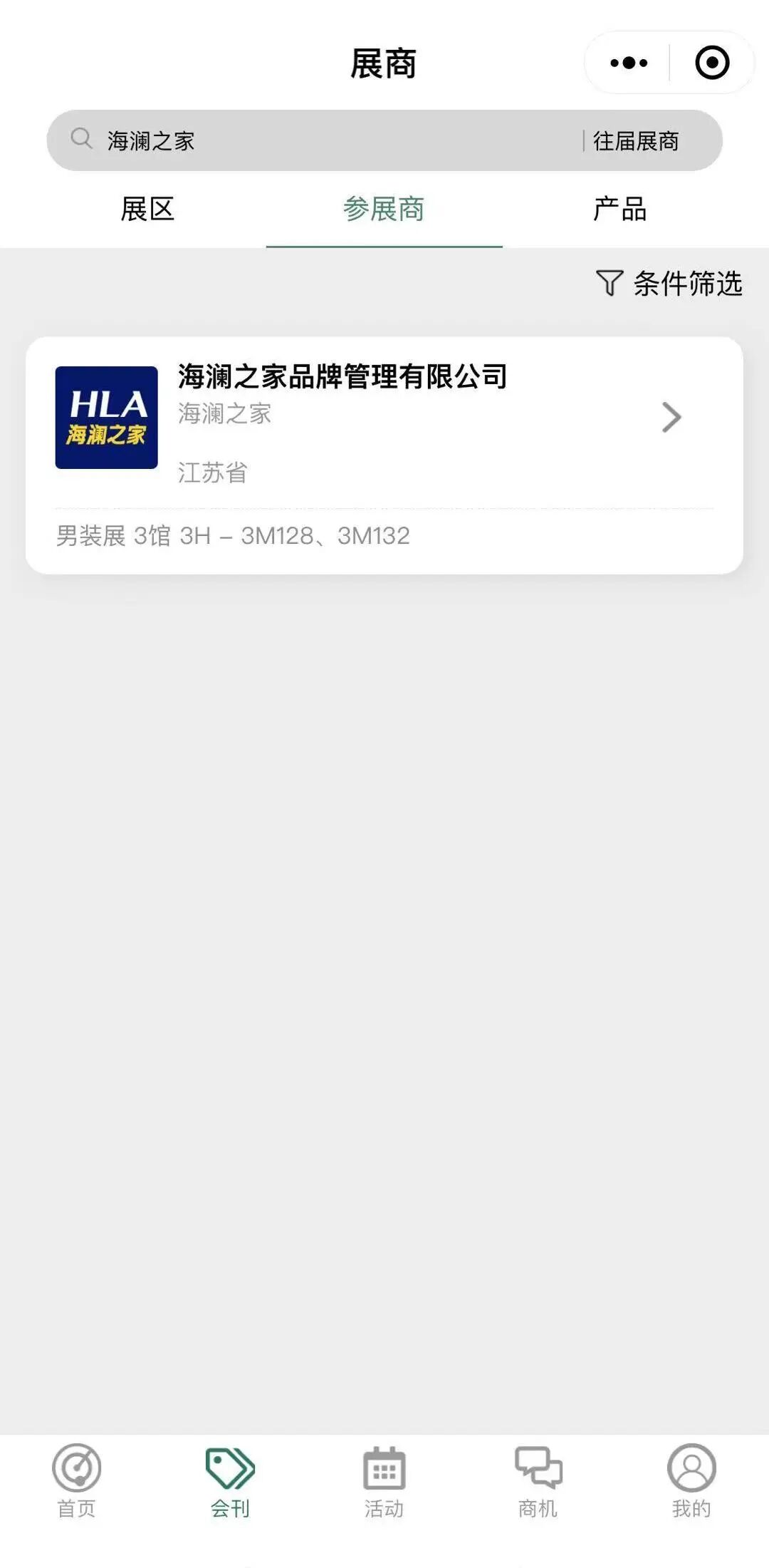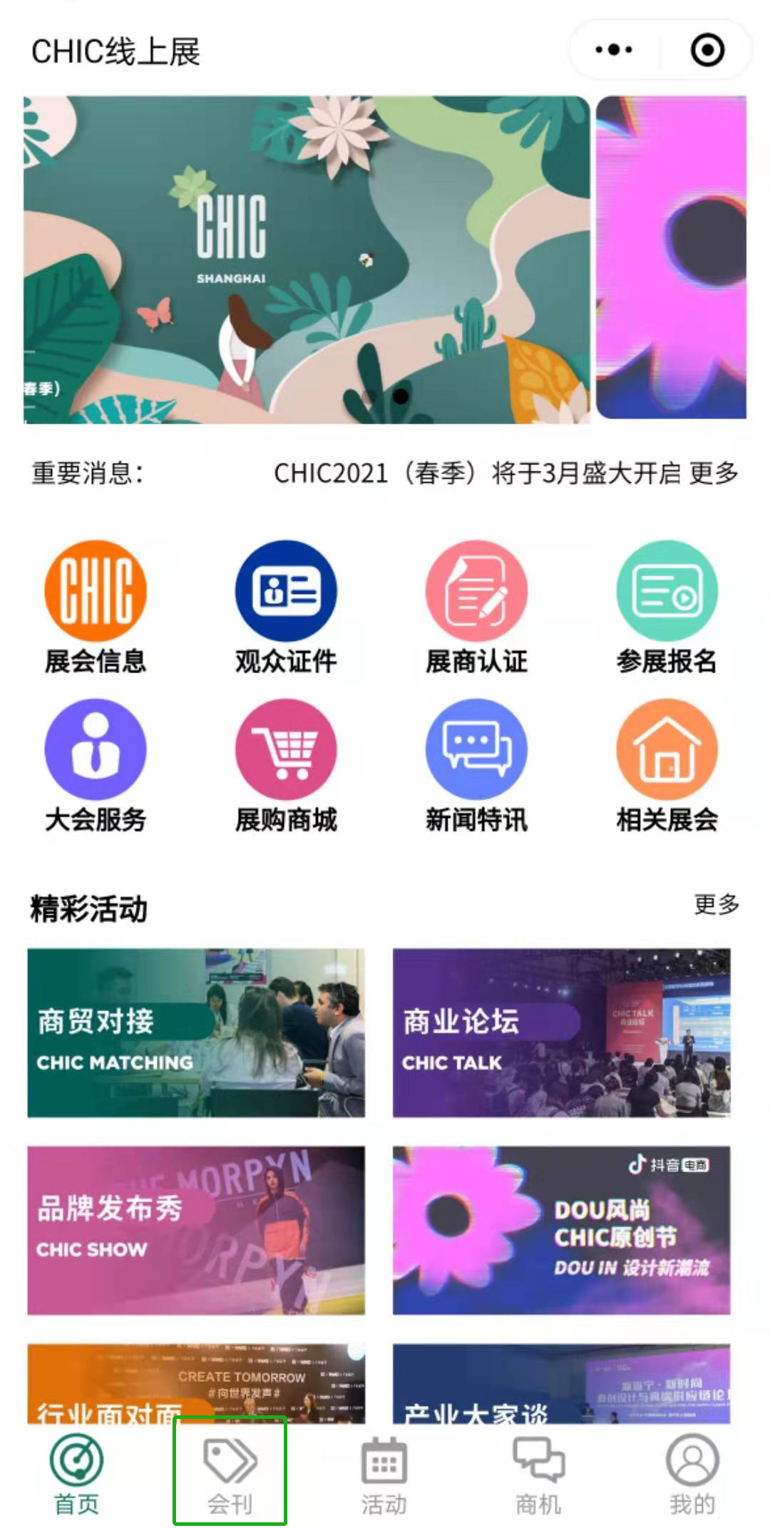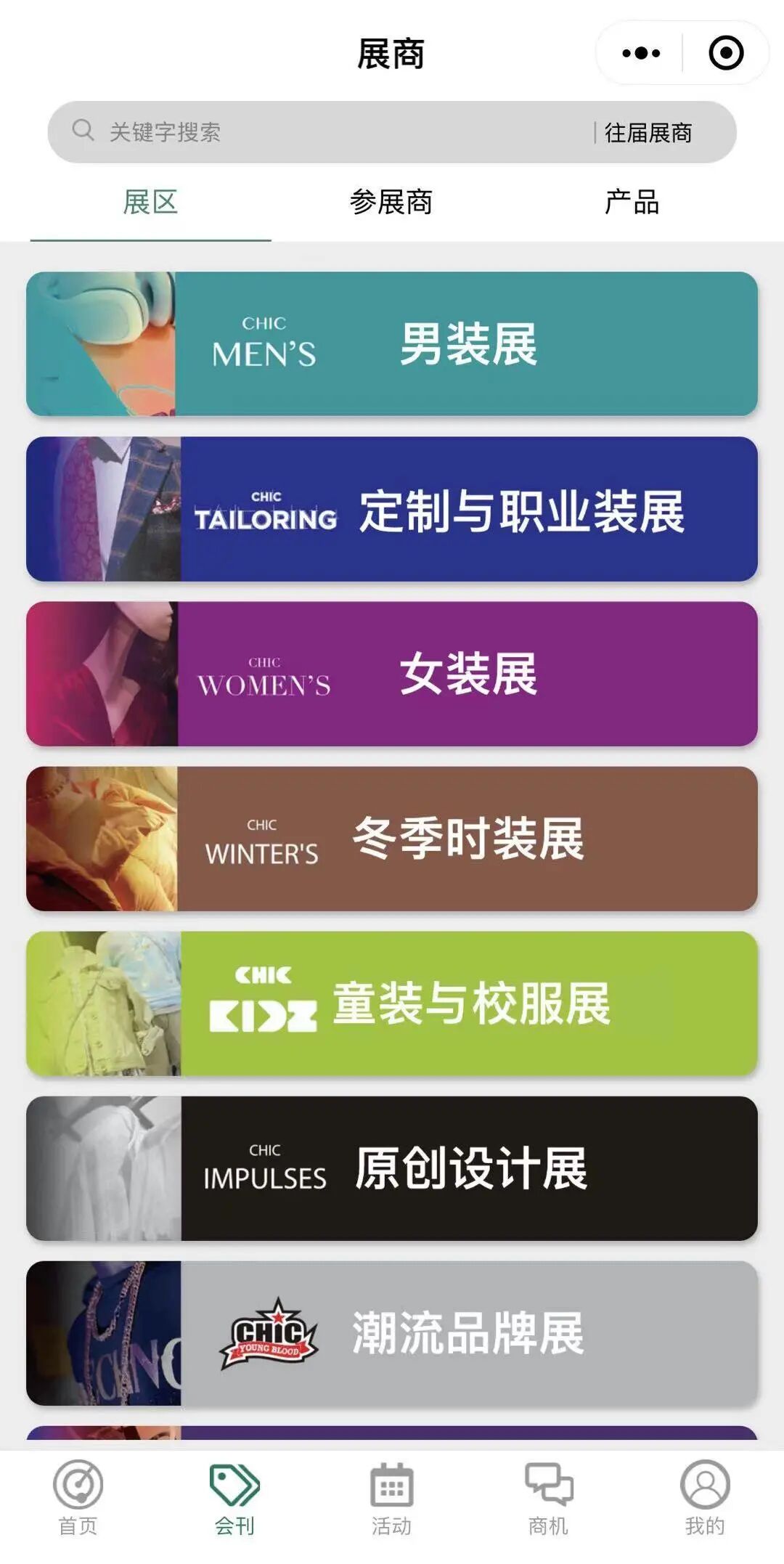 905家参展商,想要一览概况,匹配商贸需求,确实是一件挺费劲的事儿。但是现在您只需要打开“CHIC线上展”小程序,点击首页下方“会刊”版块,便能纵览所有参展商的详情及合作意向。