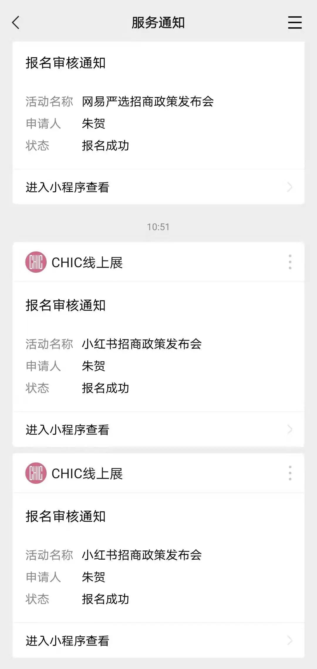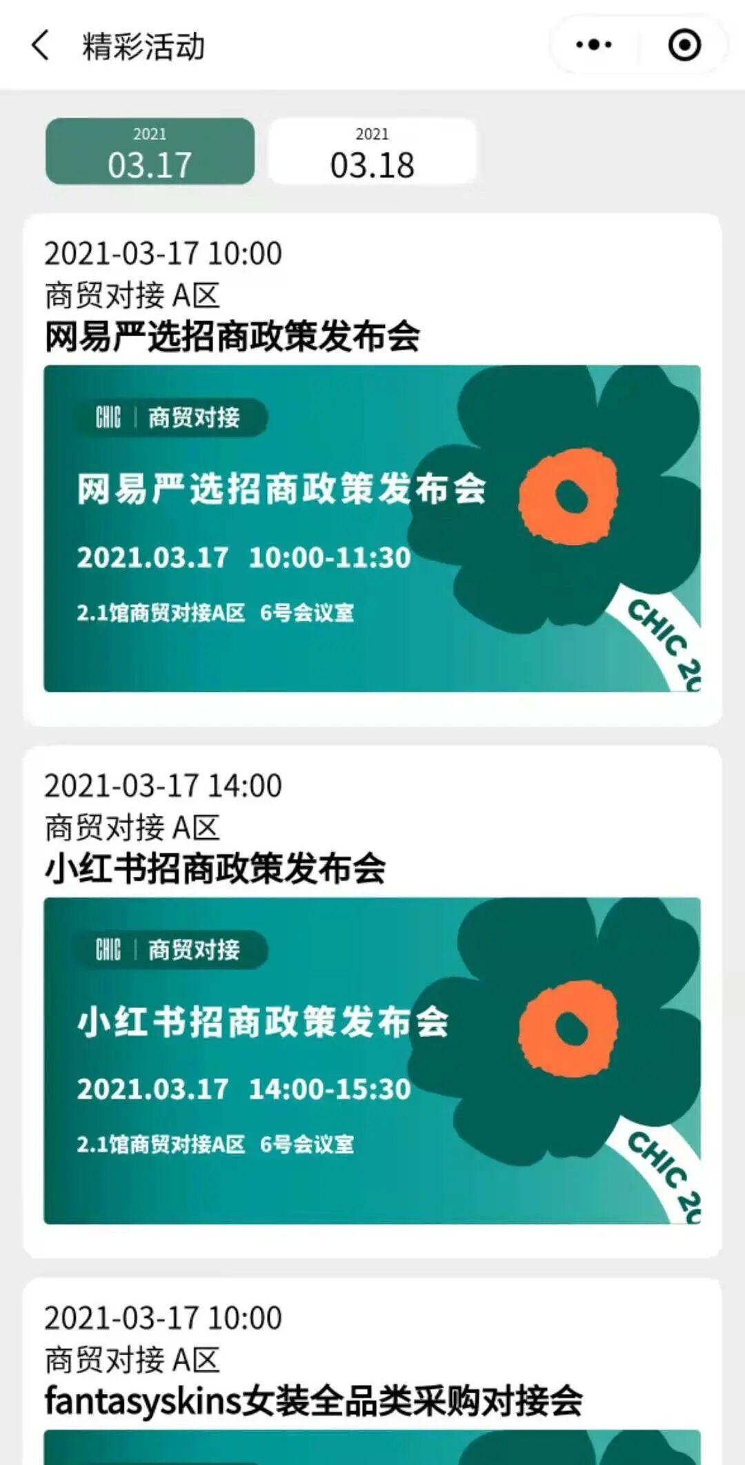 商贸对接会、商业论坛、品牌发布秀······现场活动精彩不停,想要提前预约席位,同样离不开“CHIC 线上展”小程序。