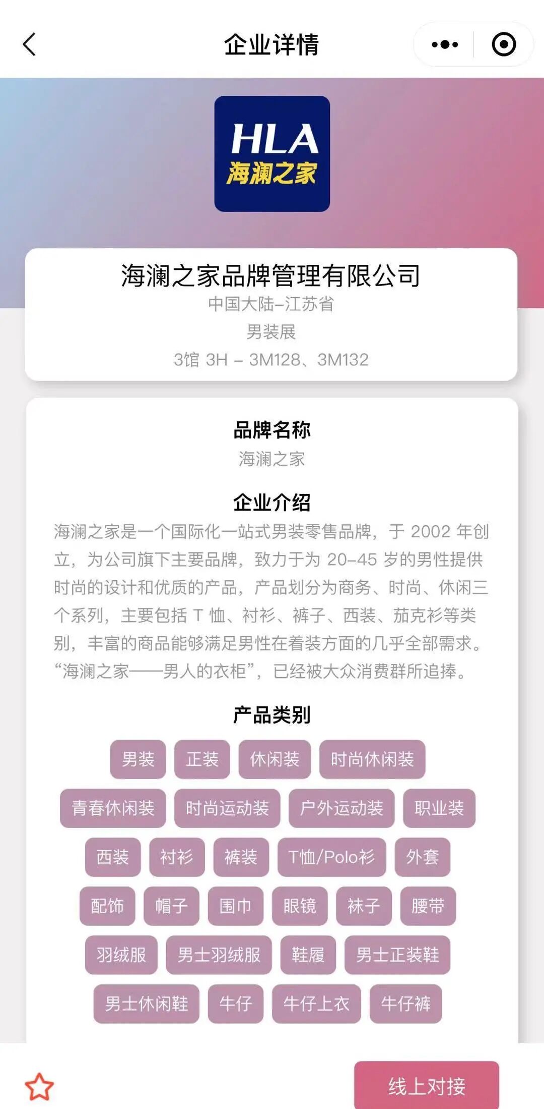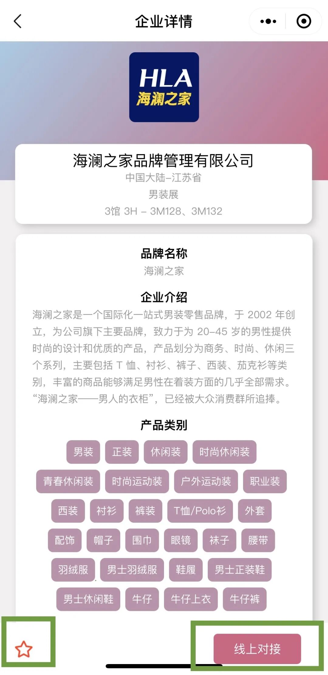 与此同时,您还可以收藏自己感兴趣的参展商,或者直接点击“线上对接”与参展商进行线上交流。