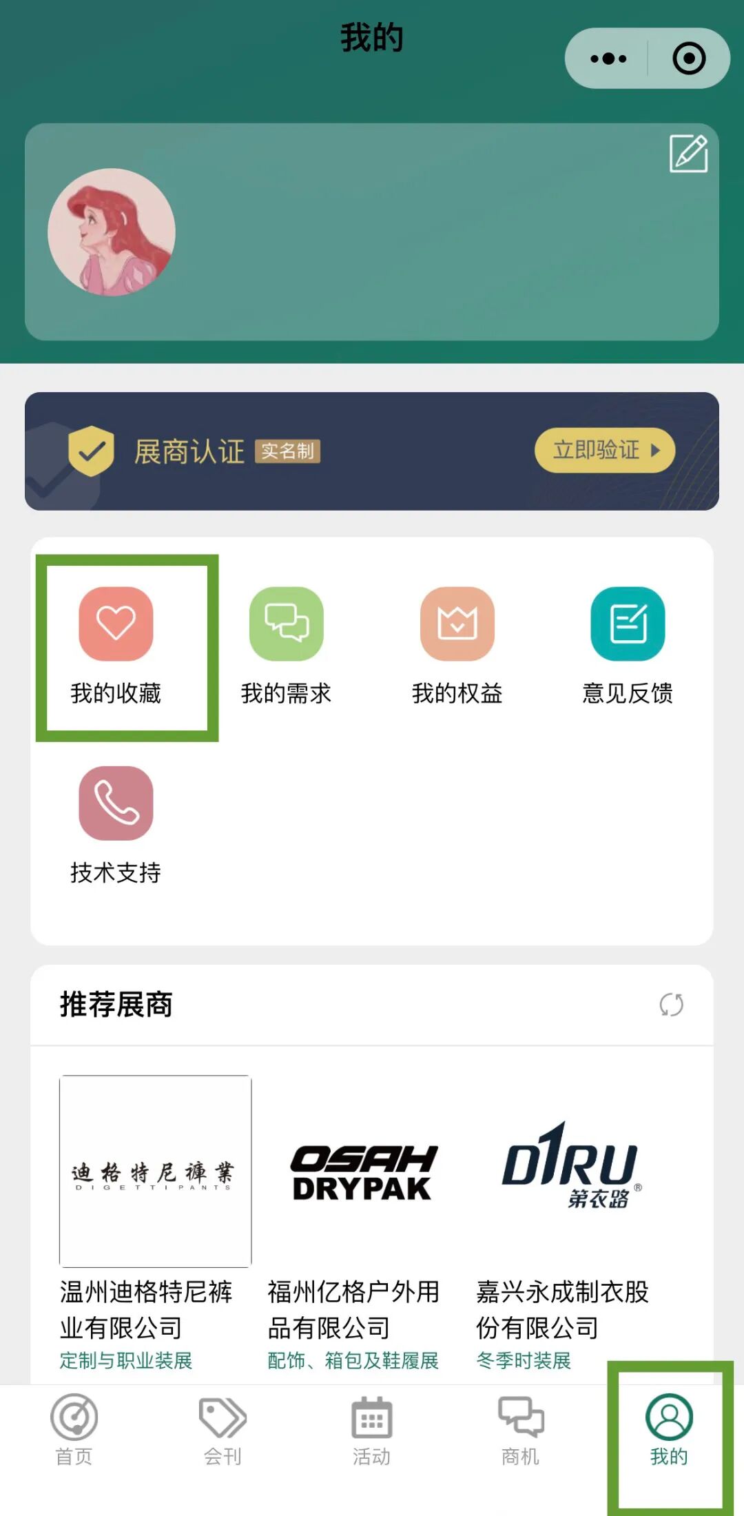 在首页下方点击“我的”,便可以看到您收藏过的所有参展商列表,方便查找。