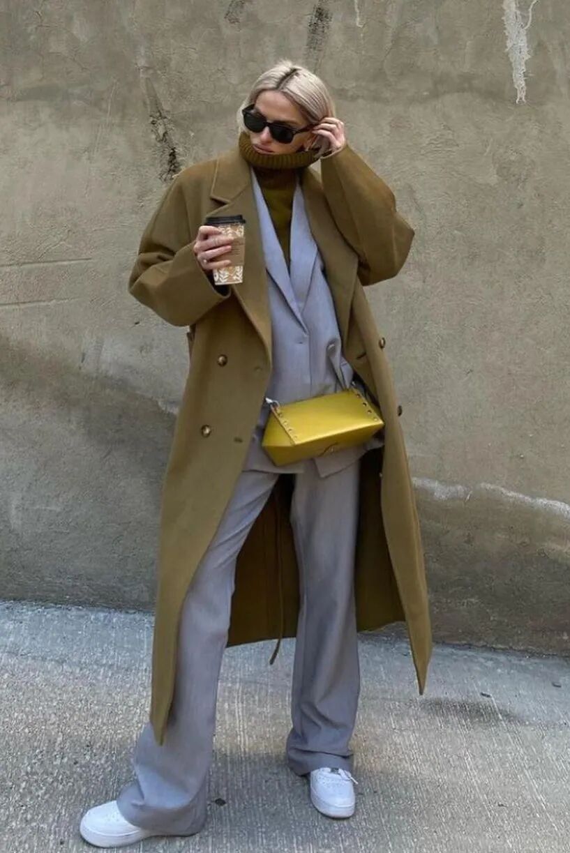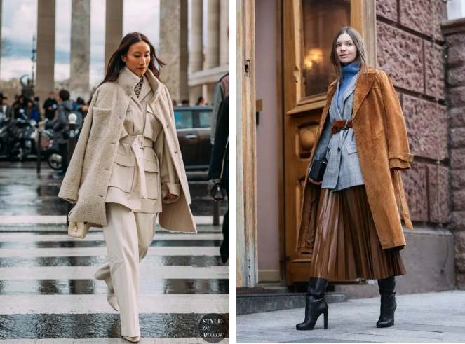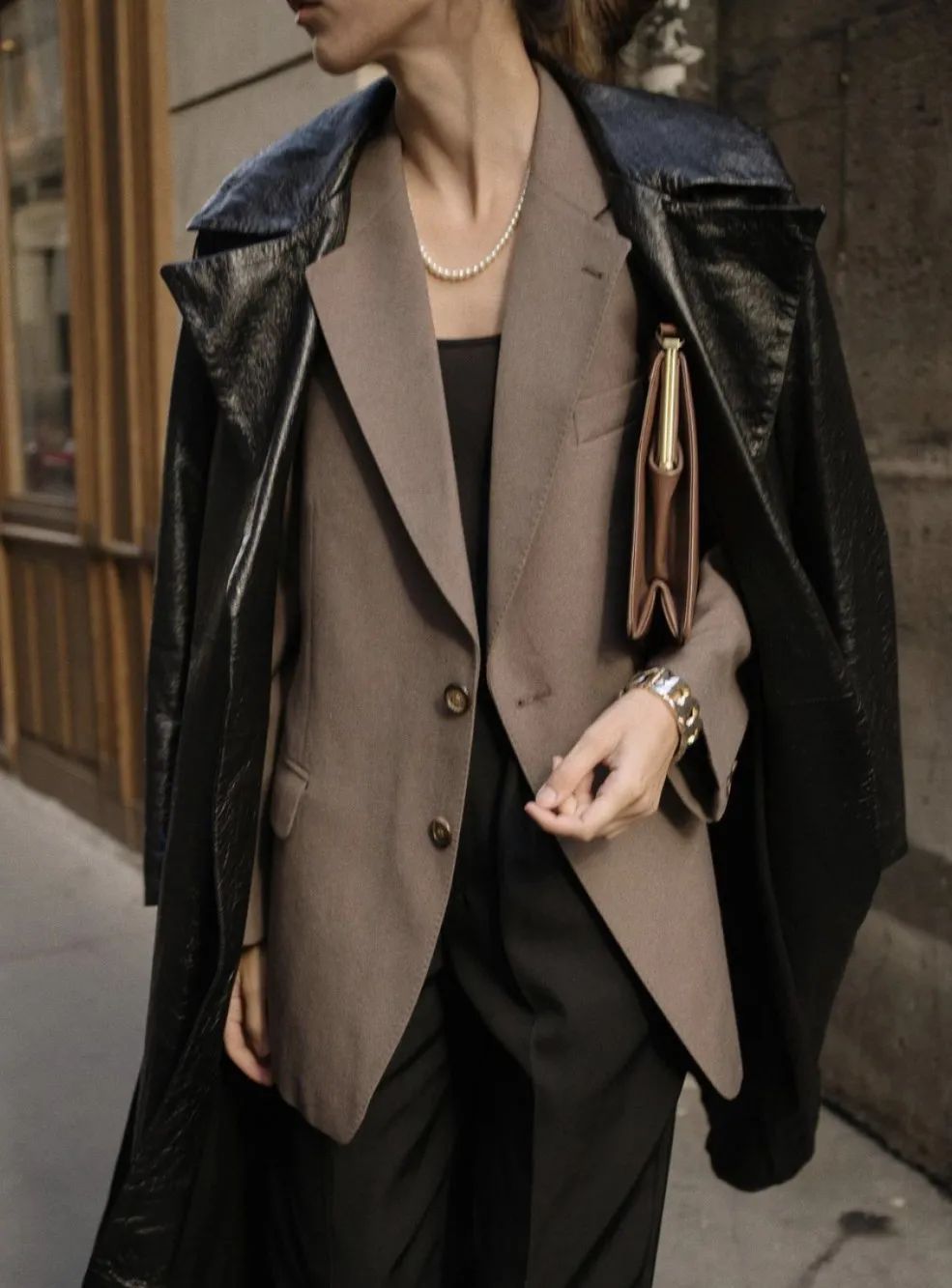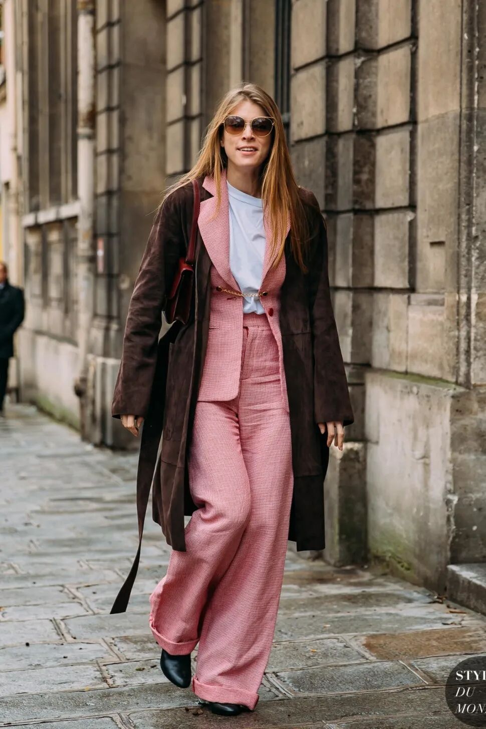 时髦女士纷纷穿上垫肩西装,披上气派大衣,和男人一样率性,走在路上,随处可见穿着硬朗的职场女性。国外的时髦人很喜欢全身一个「色 shai」。经典洒脱的“纯色西服”是一直最受大家喜欢的单品,和纯色大衣组合在一起,可谓是神仙般联手了!大衣、西装、裤装这三者中,至少要保证有两件单品的颜色是统一的。这样才能在视觉效果保持上干净整齐,整体也更容易显瘦显高。深色外套,内搭可以选择浅色;浅色外套,内搭可以穿深色,深浅有别,视觉上有个缓冲,不至于太隆重。要是觉得上面这两款太低调、又很有勇气的妹子,可以选择亮色系搭配。