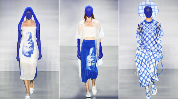 以舞蹈和肢体语言为灵感的中国设计师谭凤仪同样认为,太古老的元素已经脱离了现代的生活,世界应该了解到更真实的中国。2020 年春夏纽约时装周,Fengyi Tan 品牌受 ICY 设计师平台邀请,以中国古代历史为主题进行发布。谭凤仪解释道:“中国设计师不一定要做很‘中国元素’的东西,但要了解历史,才能有新的角度。宋代崇尚大道至简,我们选择从材料出发,用针织印花、钩针、压褶等工艺来模拟宋瓷的肌理,宋代的极简美学其实也可以运用到当代的设计中。”