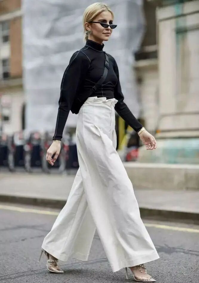 拉长身材比例,不仅显瘦更显高。深知搭配秘诀的时髦精们,将高腰裤、高腰裙作为必备单品NO.1,同时擅长利用腰带提高腰线,真正做到胸以下全是腿的完美效果。翻一翻时尚博主们的ins穿搭,不难发现,提高腰线是她们很重要的穿搭技巧之一。