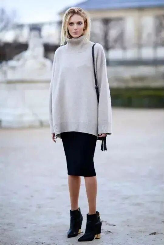 同样,如果是下身肉肉的女生,或者是典型的梨形身材,那么修身的上衣加上阔腿裤或者直接选择一件长款大衣,一样不会出错。