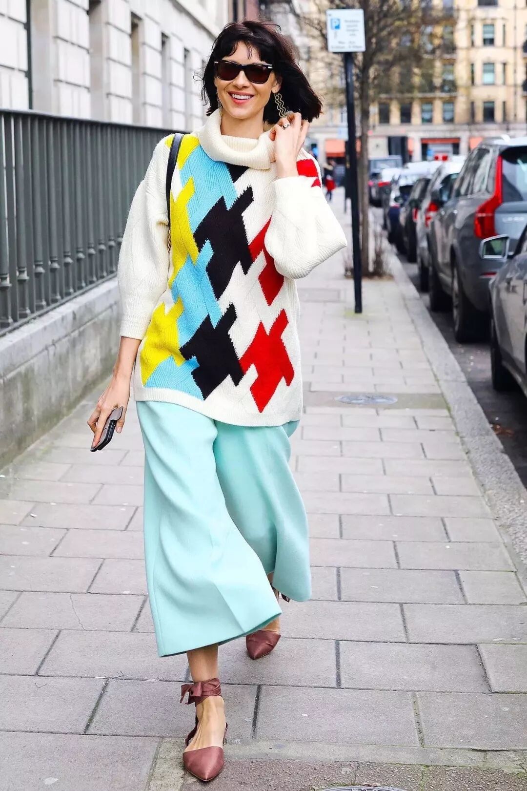 她的穿搭几乎都是彩色系的